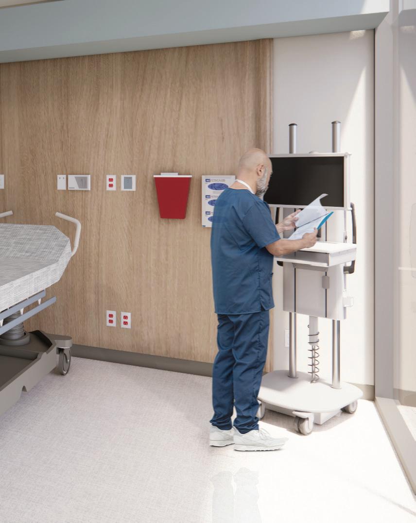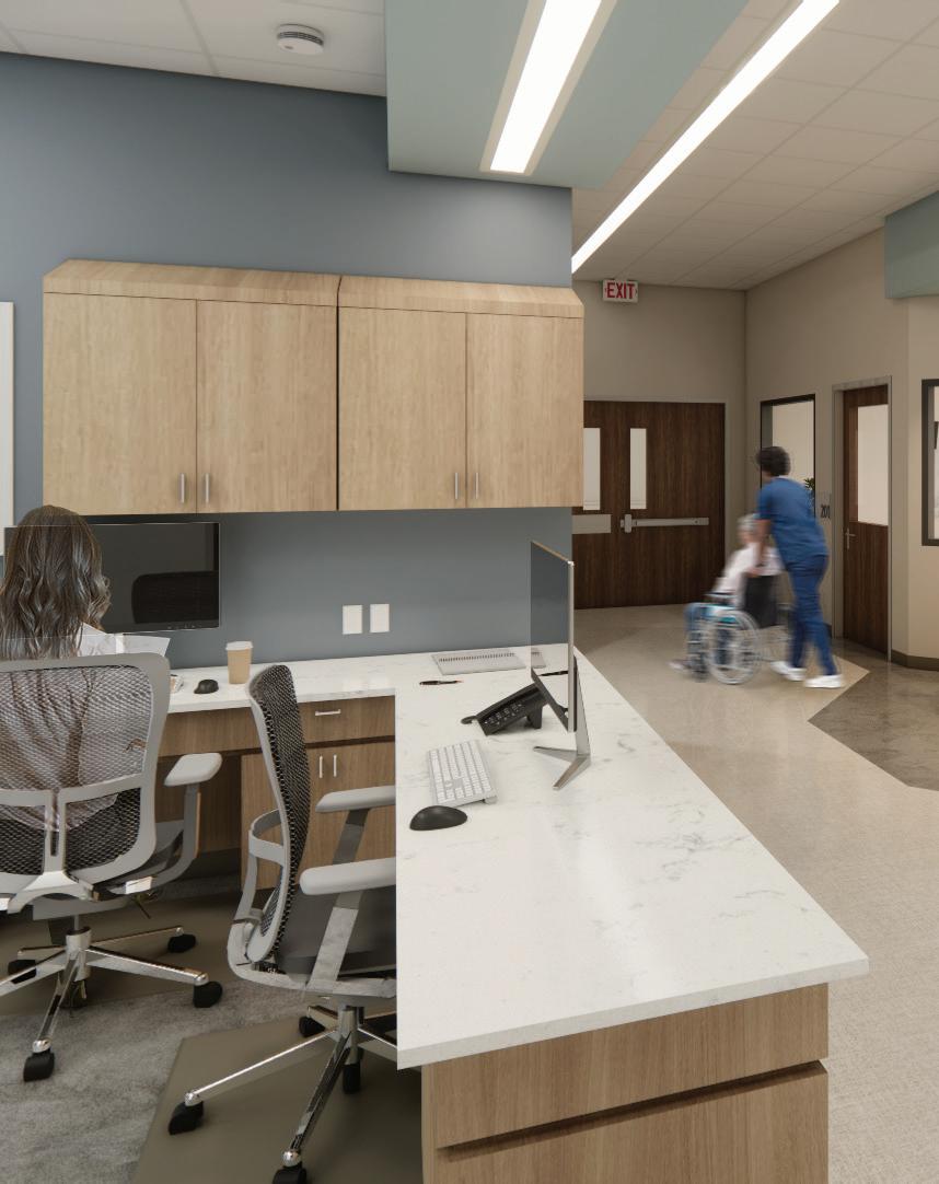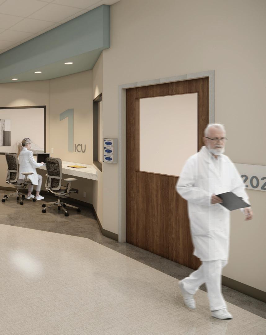 The ICU renovation creates space for families in the midst of crisis to care for their family from the critical to progressive unit.