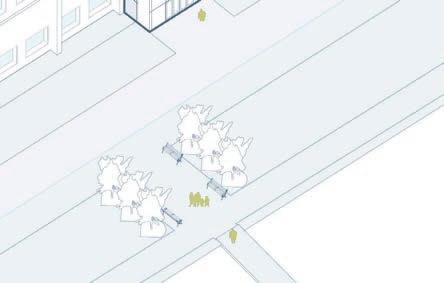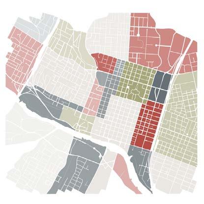 To saturate public space, four “zones” in the Cultural District intend to amplify the pedestrian experience. The cultural zone reduces vehicular traffic by doubling the walkway width. It articulates massings for a performance center, artists’ collective, museum, and recreation center. These forms adhere to local building code: new construction within Austin must never interrupt the viewpoint to the capitol building. Mixed-used and offices spread throughout the other new districts. The high density zone responds to the already exisiting increase in height of that area. These larger massings provide mixed-use spaces to introduce residential, office, and retail spaces. The medium density zone similarly adds program. It focuses on a public atmosphere of basketball courts, walking trails, amphitheaters, gardens, and a skate park. These infills seek to support the habits of the occupants. By introducing tactful public spaces, the masterplan facilitates a permanency of community by densifying connecting axes through movement.