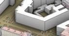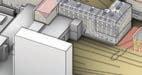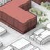 A brick shell enfolds the two hidden objects within, providing a continuation of urban fabric.