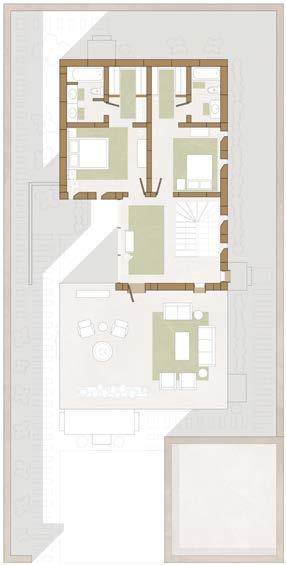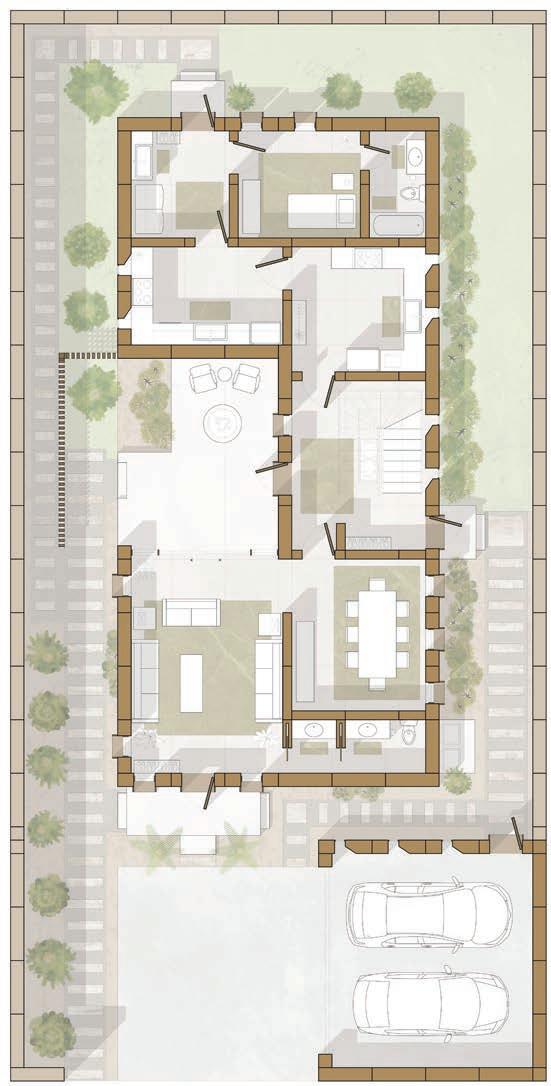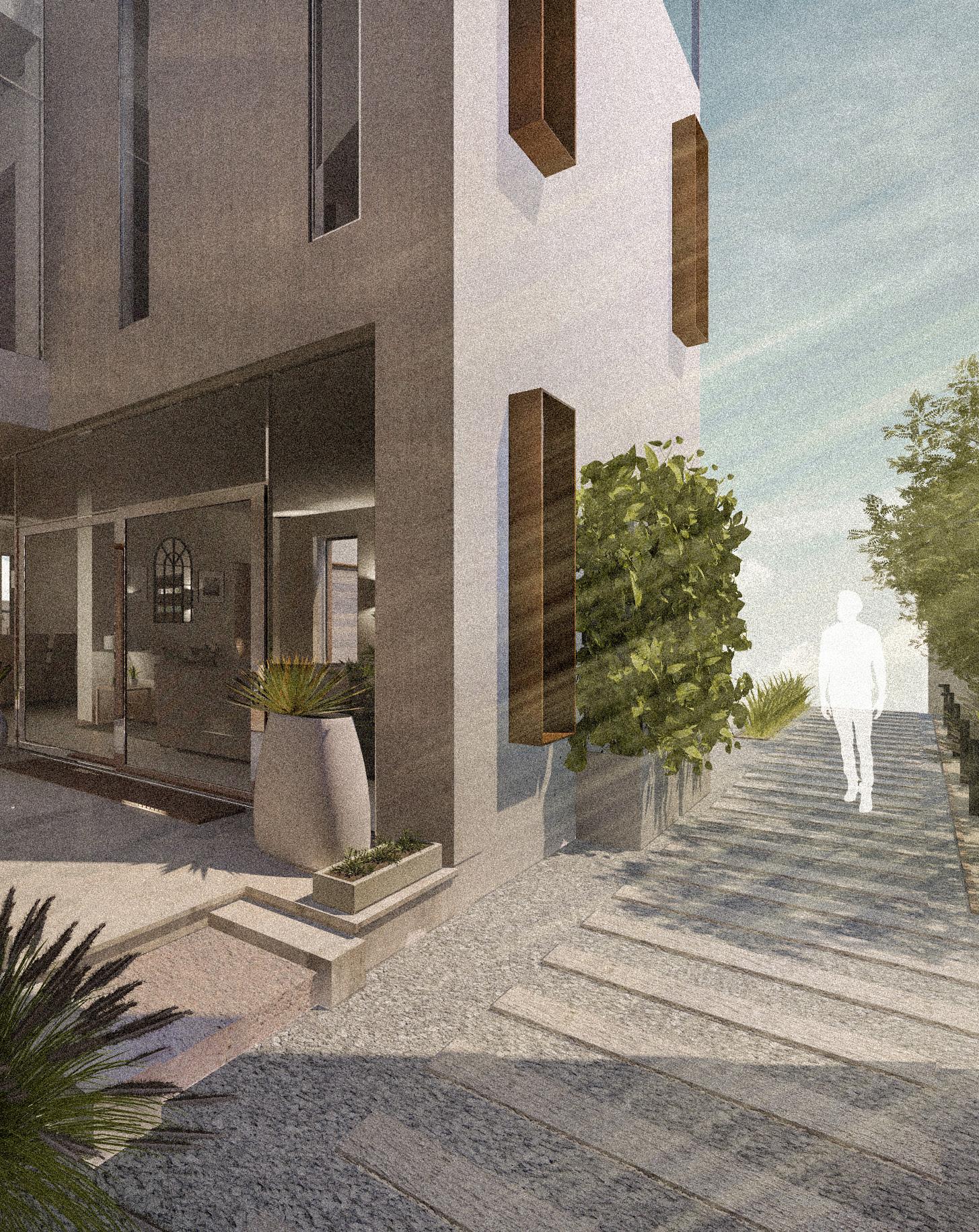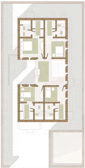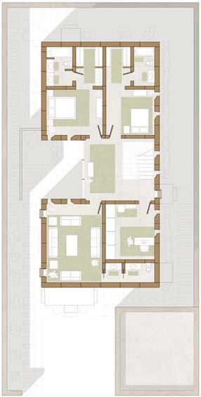 Layers of public and private interrelationships allocate interior porches per unit, encouraging ownership within a communal housing setting.