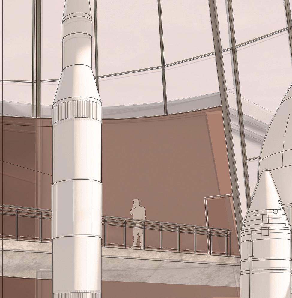 Auditorium Lobby Restrooms Exterior roof access Exhibition spaces Classrooms