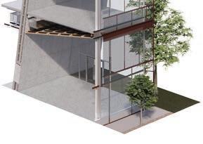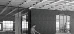 The building form relies on a system of layered construction, justifying the use of pre-engineered metal frames for bays of repetitive space. These frames span the width of the site, supported by secondary metal structural elements. The exposed