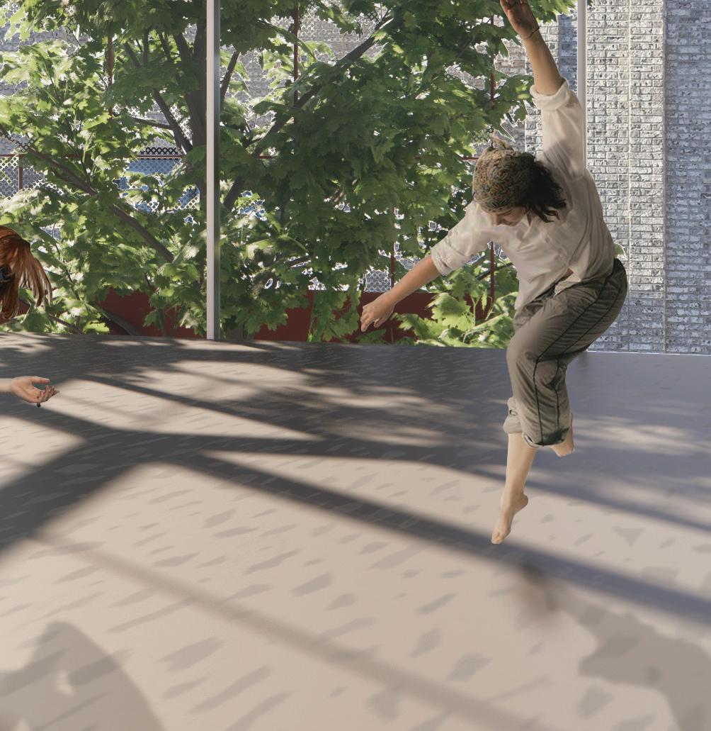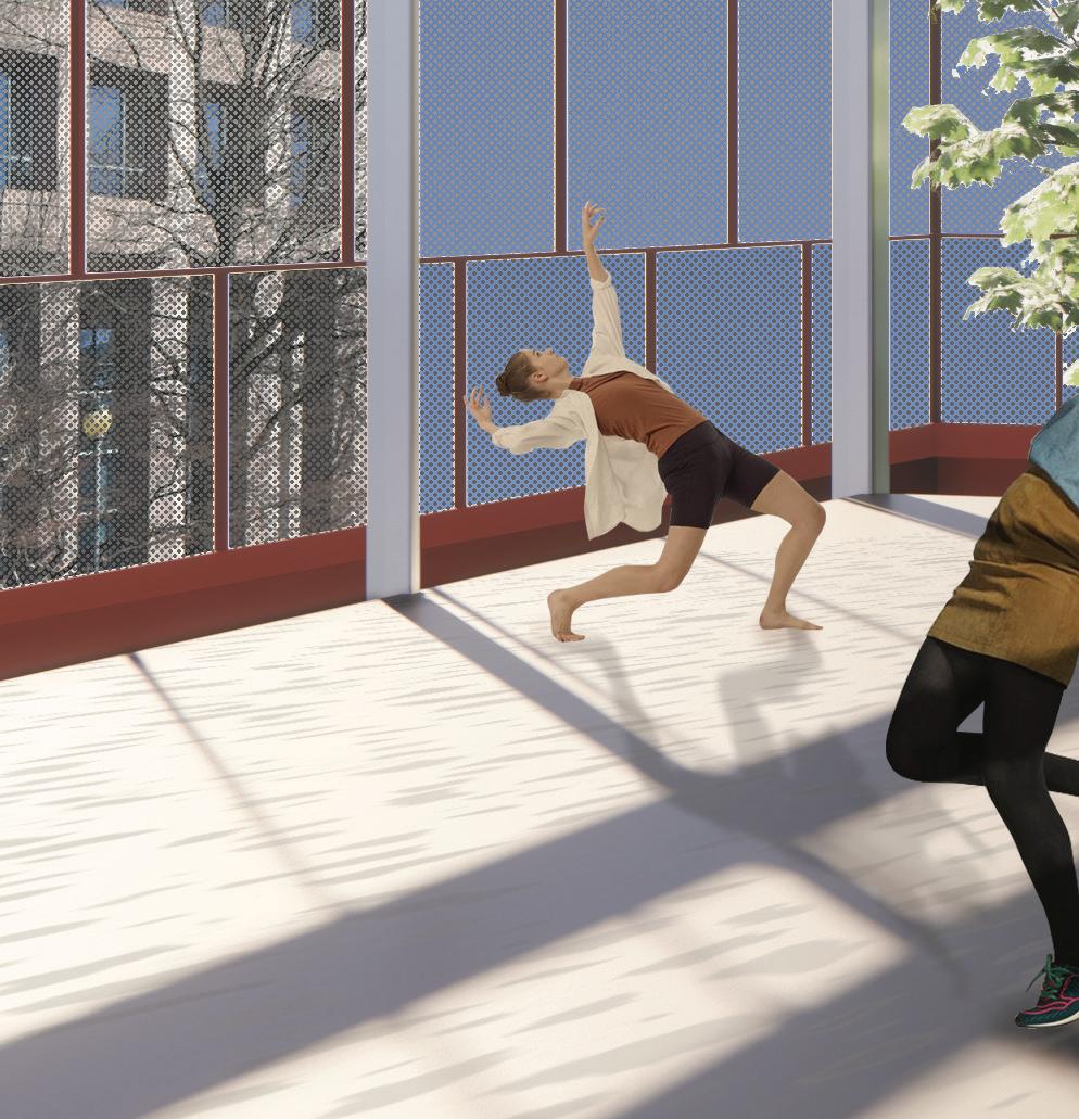 The dance atelier connects the community to the exposed program and allow access into the enclosed program as a healthy response to downtown Huntsville.