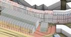 Utilizing the existing topography, the exterior terraced seating evolves into interior seating for the gymnasium.