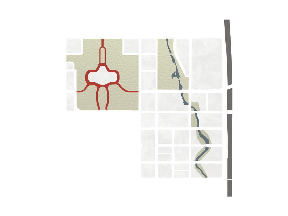 Masterplanning for Austin, the inserted buildings require specific consideration of existing conditions and future activity. The city deliberately integrates a rational gridlock framework with its heritage trees and existing waterways. These systems define the axes that dictate movement and delineate community involvement. These axes, although divisive for the city functionally, separate communities. The Red River Cultural District houses such separation in eastern downtown. I-35 and Waller Creek cut through this area, each providing a distinct boundary. These axes lack movement between the capitol and downtown district due to the absence of substantial communities in the area. Lack of accessible public spaces exacerbate this deficiency of permanency. To challenge the existing community environment design means amplifying the character of the districts. This masterplan proposal thus seeks to revitalize the existing axis and densify existing building typologies to facilitate intentional and community movement across districts.