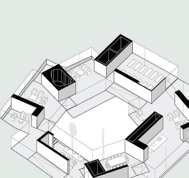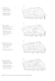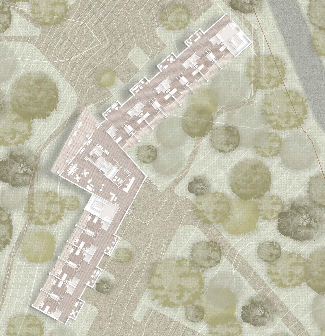 The proposal also follows a sequential documentation of the site and through the design process, from diagrams of regulating conditions to sectional decisions, plan layout, room innovations, and perspectives for material palettes. The proposal seeks to cultivate community within several scales: