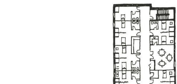Figure 13: Schwarz, Benyamin. Detail of a floor plan and a typical cluster unit plan in the original design. Drawing. “Nursing Home Design: A Misguided Architectural Model.” Journal of Architectural and Planning Research 14, no. 4 (1997): 352. jstor.org/stable/43030436.