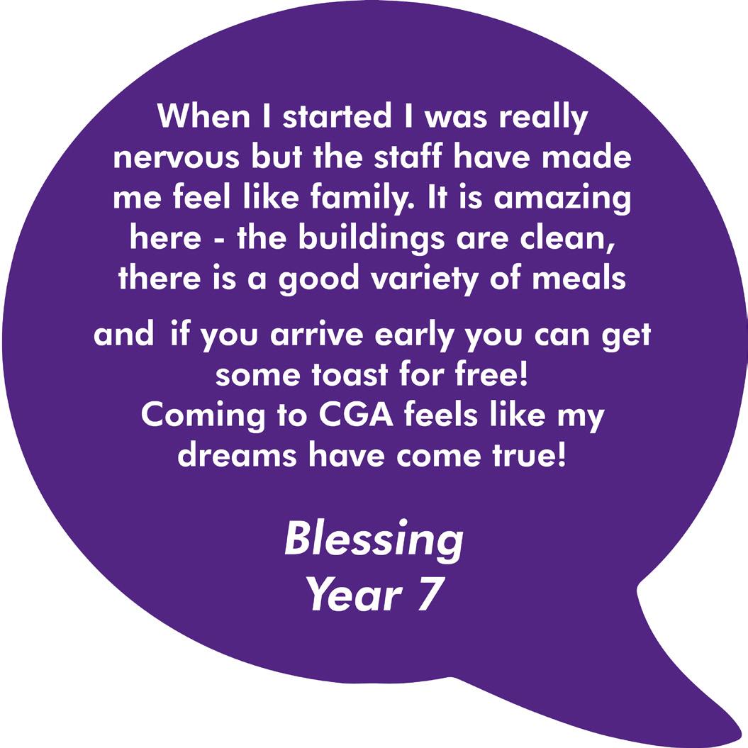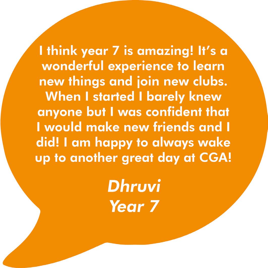 Wishing you all a warm welcome to year 7. We are looking forward to you joining us for an amazing year ahead full of new experiences. I am here, alongside the rest of the Year 7 team, to answer any questions you may have and support you to ensure you make the best possible start at CGA.