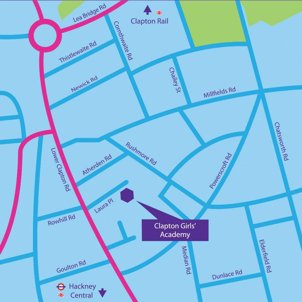 Clapton Girls’ Academy is an approximate 8 minute walk from either of these stations.
