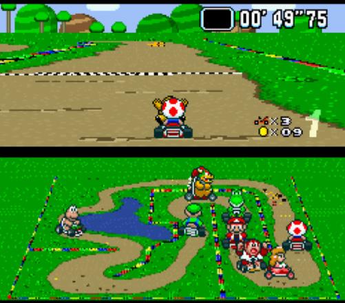 Com o sucesso internacional do NES, Nintendo tomou um novo avanço tecnológico, lançando o Super Nintendo Entertainment System (SNES) em 1990. Enquanto o console do NES deu início a muitas das franquias mais conhecidas da Nintendo, como Mario e Zelda, a SNES experimentou a jogabilidade e o design de formas que não tinham sido exploradas antes. Em Super Mario Kart (1992), é um ótimo exemplo do avanço do design de jogos.