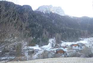 1 - La frazione di Scalón, alla confluenza del Ru da Tos nel Cordevole tra Caprile ed Alleghe, è ubicata in una zona ad alto rischio alluvionale in quanto il piano su cui giacciono le abitazioni sitrovaaldiso odelle odelCordevole(fotoGioiaFassa).