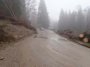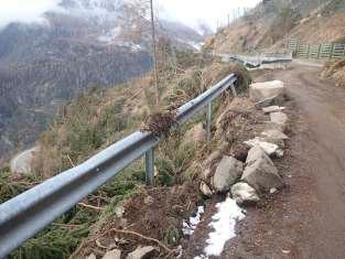 17 - La strada che porta dalle frazioni di Róva-Zambelli e Zanata a Vidót(SelvadiCadore)èstatainteressatadacedimen chehanno richiestol'usodipaliperlasuamessainsicurezza.