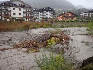 5 - Il Torrente Róva nei pressi di Agordo: nonostante il livello aumentatoacausadellefor pioggel'acquaèrimastatragliargini chehannoprote ol'abitato.Sinotaanchequantosiaimportante la pulizia dei corsi d'acqua per evitare il trasporto di materiale vegetaleinoccasionedipiene.