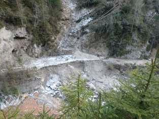 1 - Frana sul versante sinistro del T. Cordevole in località Le Campe: la viabilità, dapprima interro a, è stata ripris nata a senso unico alternato e con divie ai mezzi pesan nell'a esa di sistemareilmovimentofranoso.
