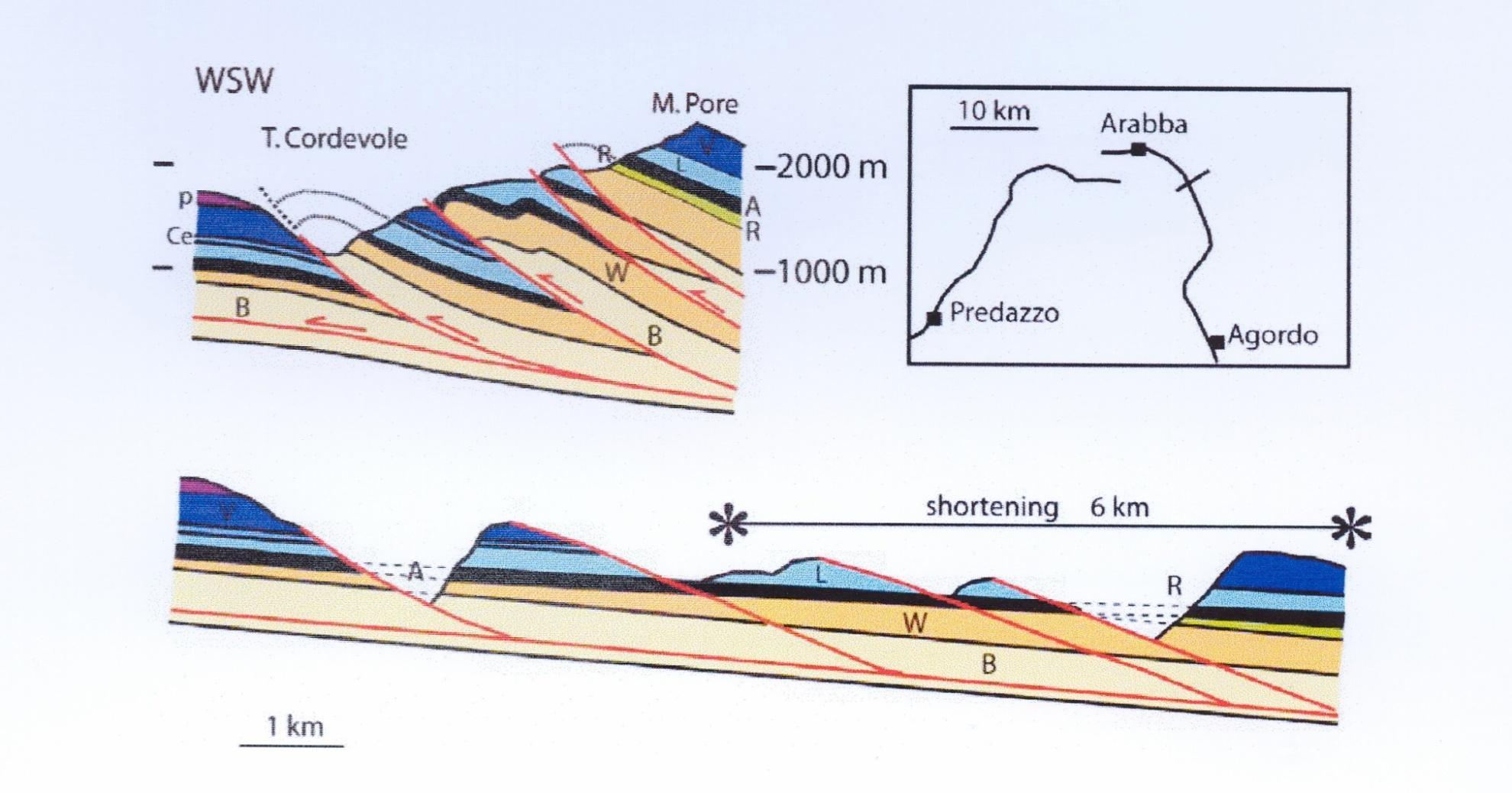 • Si delineano importanti strutture tettoniche: Linea di Stava, Linea di Trodena, Anticlinale di Cima Bocche, Linea di Livinè.