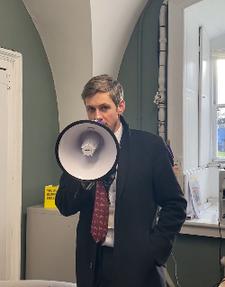 Pupils interviewing Mr Bishop, from National Trust’s Claremont Landscape Garden