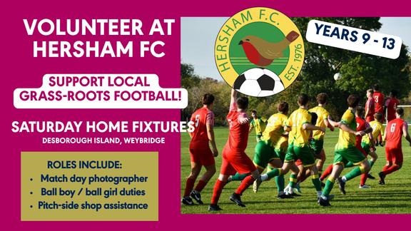 Working with Hersham FC, following successful match-day photography volunteering, Hersham FC is seeking a permanent social media volunteer (Year 9-13)