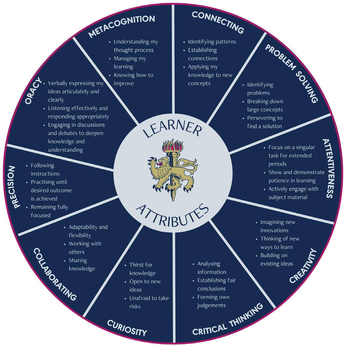 Our curriculum from Year 7 is therefore designed to devleop ten specific learner attributes: