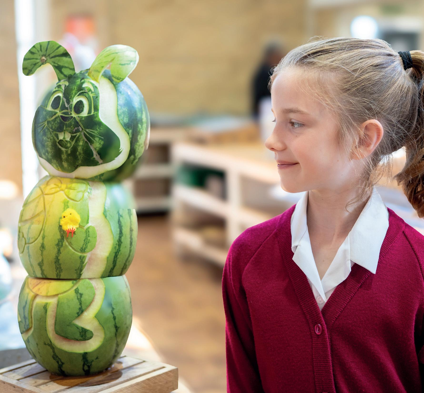 During the lunch period, our pupils eat a school lunch freshly prepared on site. They may choose from a hot main course, a pasta, jacket potato, or vegetarian option served with fresh vegetables and salads. A pudding is available together with a choice of cold desserts and fruit. Pupils are also offered a selection of filled baguettes, wraps or sandwiches. Sample menus can be viewed on the parent portal. A packed lunch is typically supplied for pupils when they are on a school trip. Special dietary needs can usually be accommodated in liaison with your child’s tutor, school office or the care centre although we do not offer specific kosher or halal meals. We very much value the social aspect of a shared lunch time experience and therefore this is a compulsory element of the day and lunch should only be eaten in the dining halls. Refunds cannot be made if a meal is not taken. Year groups are allocated a rota of lunch sittings.