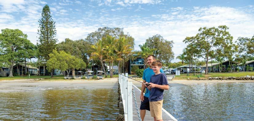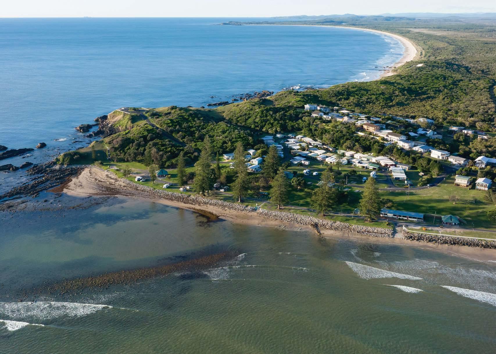 The rows of campsites and caravans, with canvas annexes fluttering in the sea breeze, evoke a reassuring oldfashioned charm. Brooms Head Lookout is often the first stop for visitors, offering stunning coastline views and a fantastic vantage point for spotting whales and dolphins. You might even see kangaroos hopping by your campsite! With beautiful beaches and inviting rock pools right on your doorstep, Brooms Head promises unforgettable moments in nature, making it the perfect getaway for families and friends alike.