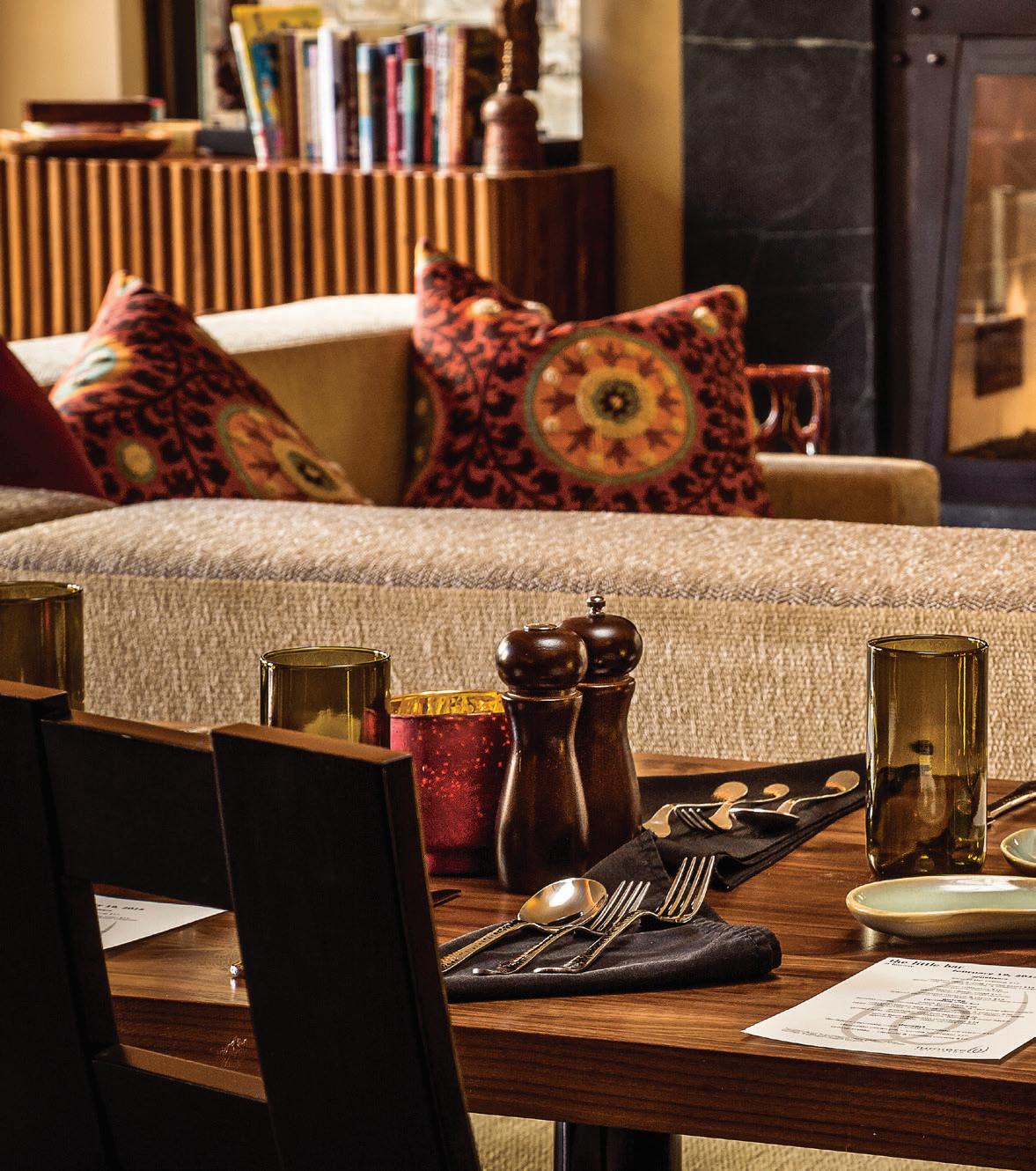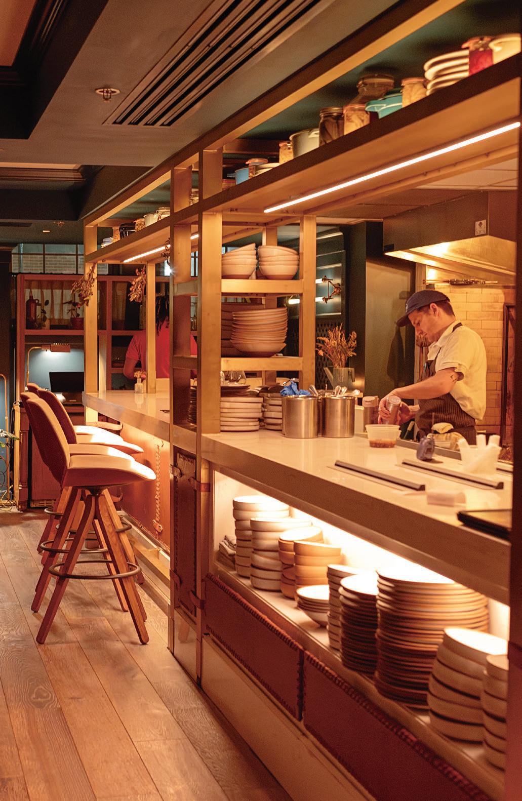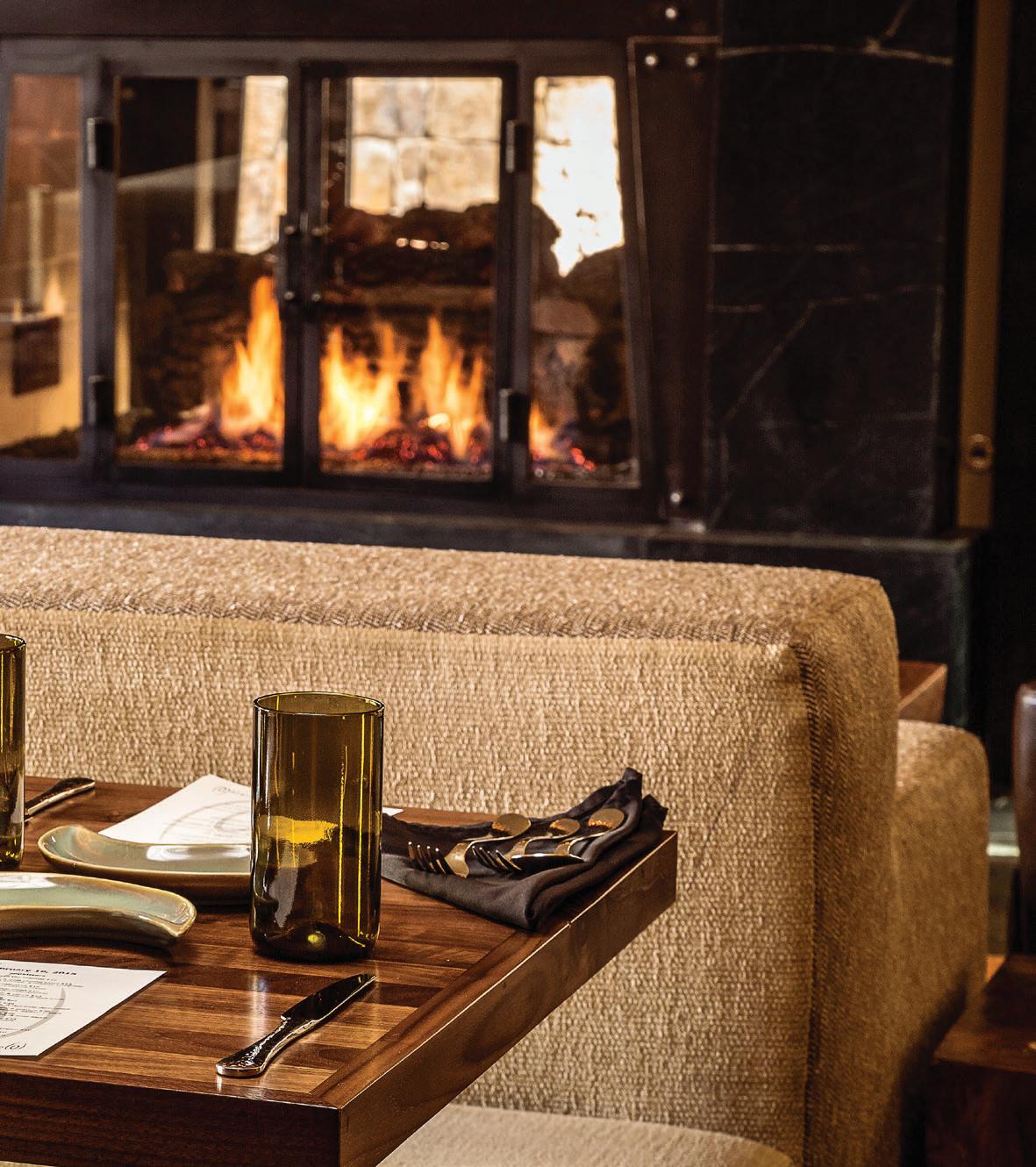 If you prefer your dining a li le more unbu oned, head to The Campground, a rustic-chic hideaway where moody walls and a copper bar set the tone. Think summer camp reimagined by a designer with a sense of humor and a well-stocked bar. The martini, served with a side of potato chips, is a local legend. With its gardenlit patio and vegetable-forward plates,
