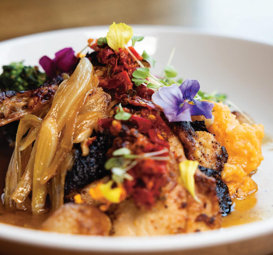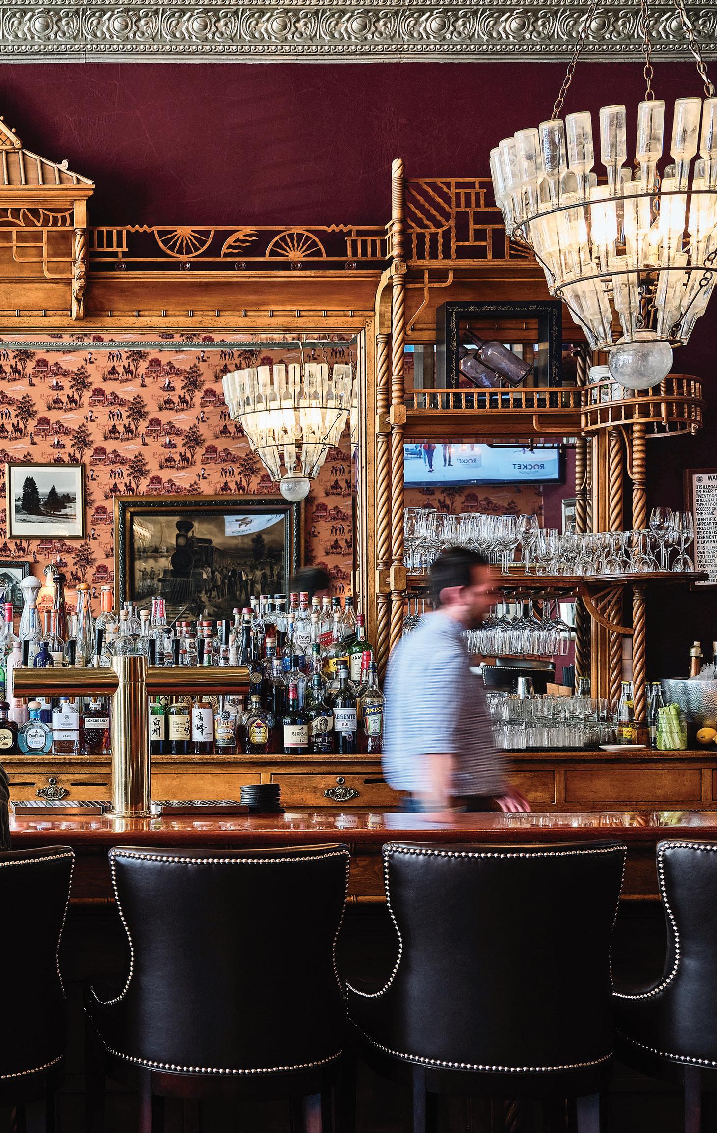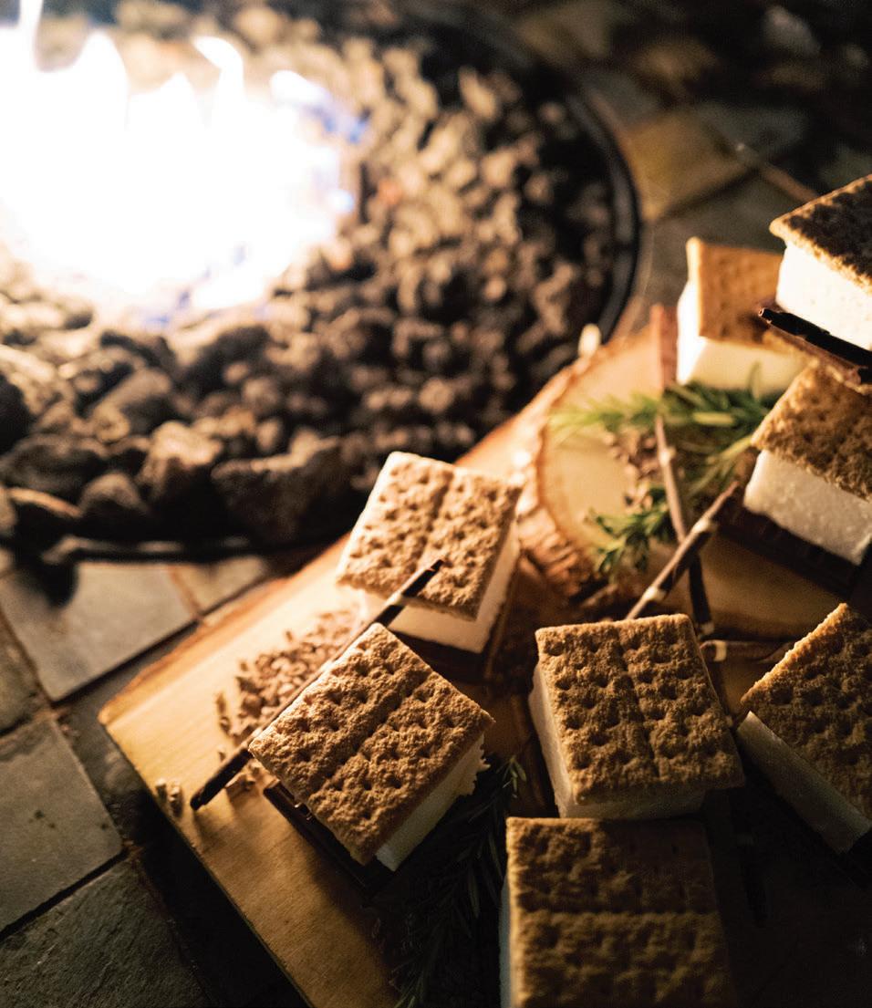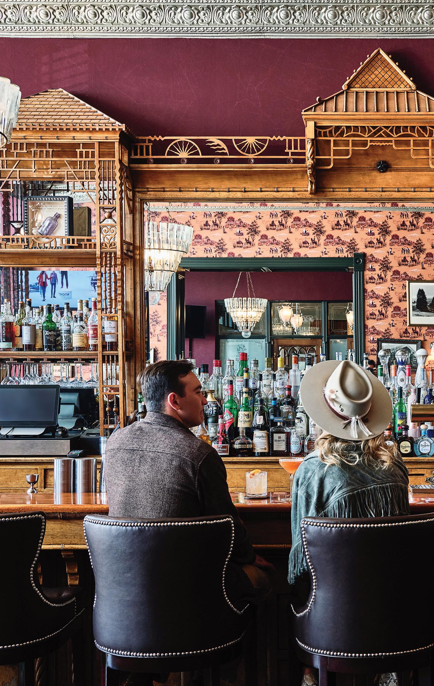 If you prefer your dining a li le more unbu oned, head to The Campground, a rustic-chic hideaway where moody walls and a copper bar set the tone. Think summer camp reimagined by a designer with a sense of humor and a well-stocked bar. The martini, served with a side of potato chips, is a local legend. With its gardenlit patio and vegetable-forward plates,