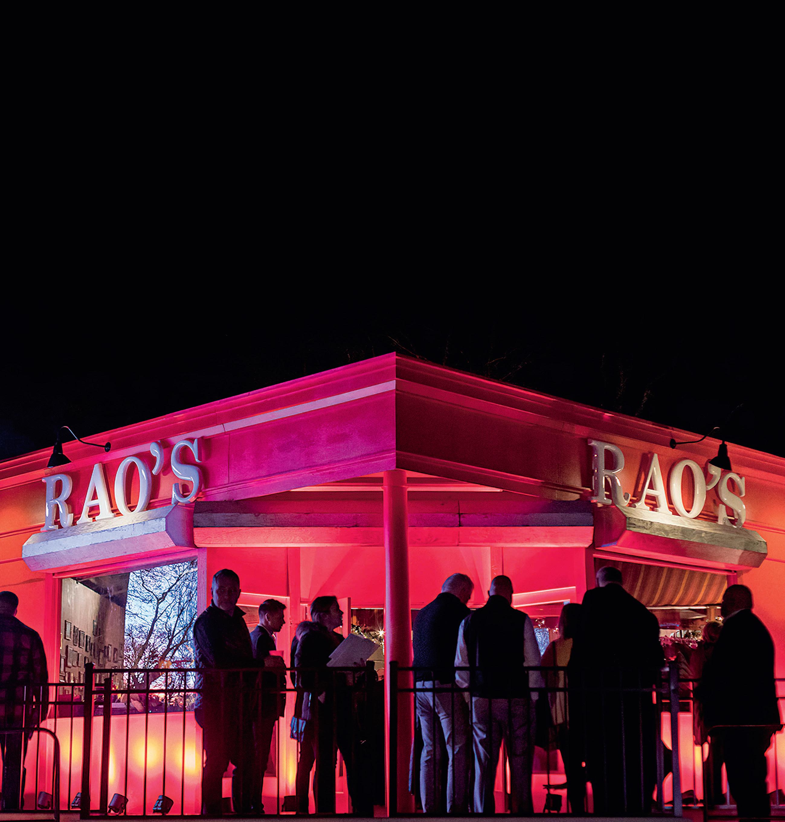 That same philosophy extends to Rao’s growing presence at highprofile events, particularly in sports and entertainment. In recent years, Rao’s has become a coveted fixture during Super Bowl week, hosting invite-only pop-up dinners and private events that replicate the intimacy of the original restaurant— no small feat in temporary venues and unfamiliar cities.