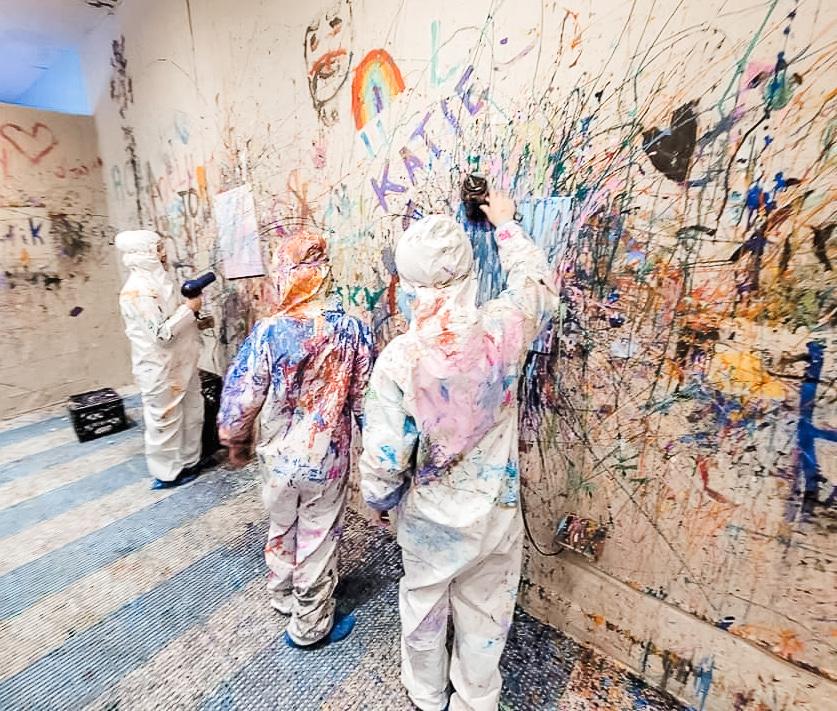 "GRAB YOUR PAINT COLORS, YOUR CANVAS, SUIT UP IN PROTECTIVE GEAR AND THEN SPLATTER AWAY!"