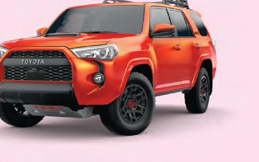 2 EL NUEVO DIA | MIÉRCOLES, 3 DE MAYO DE 2023 www.clasificados.pr *Garantía 200,000 millas/10 años en Motor, Caja de transmisión, Barra de transmisión, Caja de transferencia y Eje de impulsión. Powertrain Limited Warranty administered by Fidelity Warranty Services (FWS), insured by Courtesy Insurance Company,(A rated insurer), más detalles en el dealer. (1) Toyota Corolla 2023 mod. 1695 LE $27,700 Bono de hasta $700. Toyota Corolla 2023 mod. 1681 - $28,750, $19,850 de pronto; 84 pagos de $129.33 sin seguro al 5.84% APR. (2) Bono de hasta $4,000 aplica a Toyota RAV4 2023 modelo TRD O Road mod. 4376 - precio $52,200. (3) Bono de hasta $5,000 aplica a Toyota 4Runner 2023 modelo TRD Pro 8799 - precio $75,930, sólo 2 unidades disponibles. (4) Si cuali ca. (5) PLAN DE MANTENIMIENTO SIN COSTO EN MODELOS 2023 - 2 años ó 25,000 millas, lo que ocurra primero - Consulta detalles de los servicios recomendados de fábrica y los intervalos en la guía de Mantenimiento del vehículo. Los requisitos de Servicio y los intervalos varía según el modelo. (6) Oferta de $0 Pagos hasta julio 2023 aplica a clientes que rmen entre el 26 de mayo de 2023 al 4 de junio del 2023. (7) Toyota Corolla Cross 2023 mod. 6380 - $30,995, $18,800 de pronto; 84 pagos de $177.22 sin seguro al 5.84% APR. DESDE $129 MENSUALES Corolla BONO DE HASTA $4,000 RAV4 TRD PRO BONO DE HASTA 5,000 4RUNNER TRD PRO Ofertas desde Pronto $0 Aceite y Filtro por 2 años GRATIS CERO PAGOS HASTA JULIO 2023 ACEPTAMOS TRADE IN • ¡VISÍTANOS HOY! (1) (3) (4) (5) (6) 000 9 DE HASTA 00 000(2)