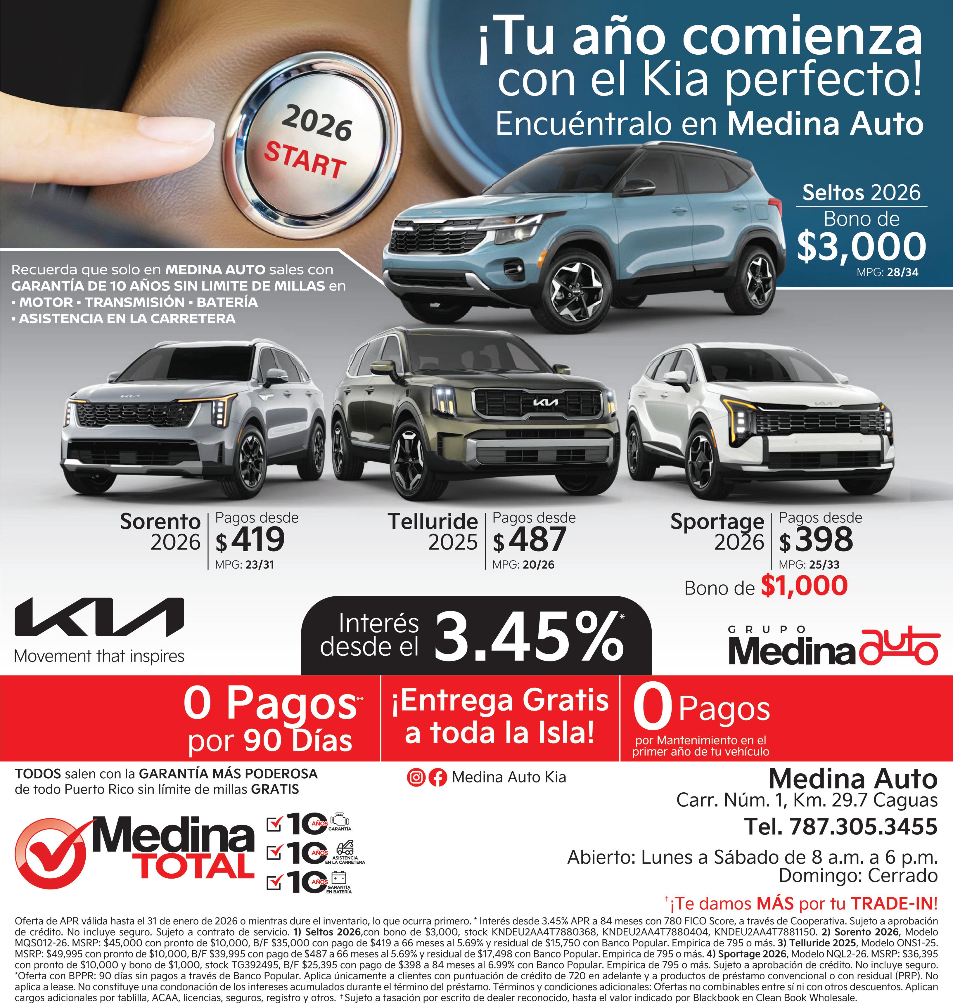 1. Asistencia en la Carretera por 10 años aplica a autos nuevos. 2. 2025 Corolla LE. Precio: $30,995. Pronto: $5,000. Financiad o al 0% APR a 72 meses por Toyota Financial. Requiere 740+ de empírica. 3. Aceite y filtro de por vida aplica a 2025 Corolla. 4. Gasolina gratis por 1 año, basado en consumo estimado según la EPA. 5. 2025 COROLLA LE. STOCK #031087. Precio especial: $23,780. 6. Corolla Cross LE 2025 pago mensual de $299. Precio: $34,995; Pronto: $5,000; Balance a financiar: $30,890; 12 pagos mensuales de $299; pagos 13 - 60 meses: $463.48. Sujeto aprobación de crédito. Stock #143307. 7. 2025 RAV4 LE. Stock #324324.