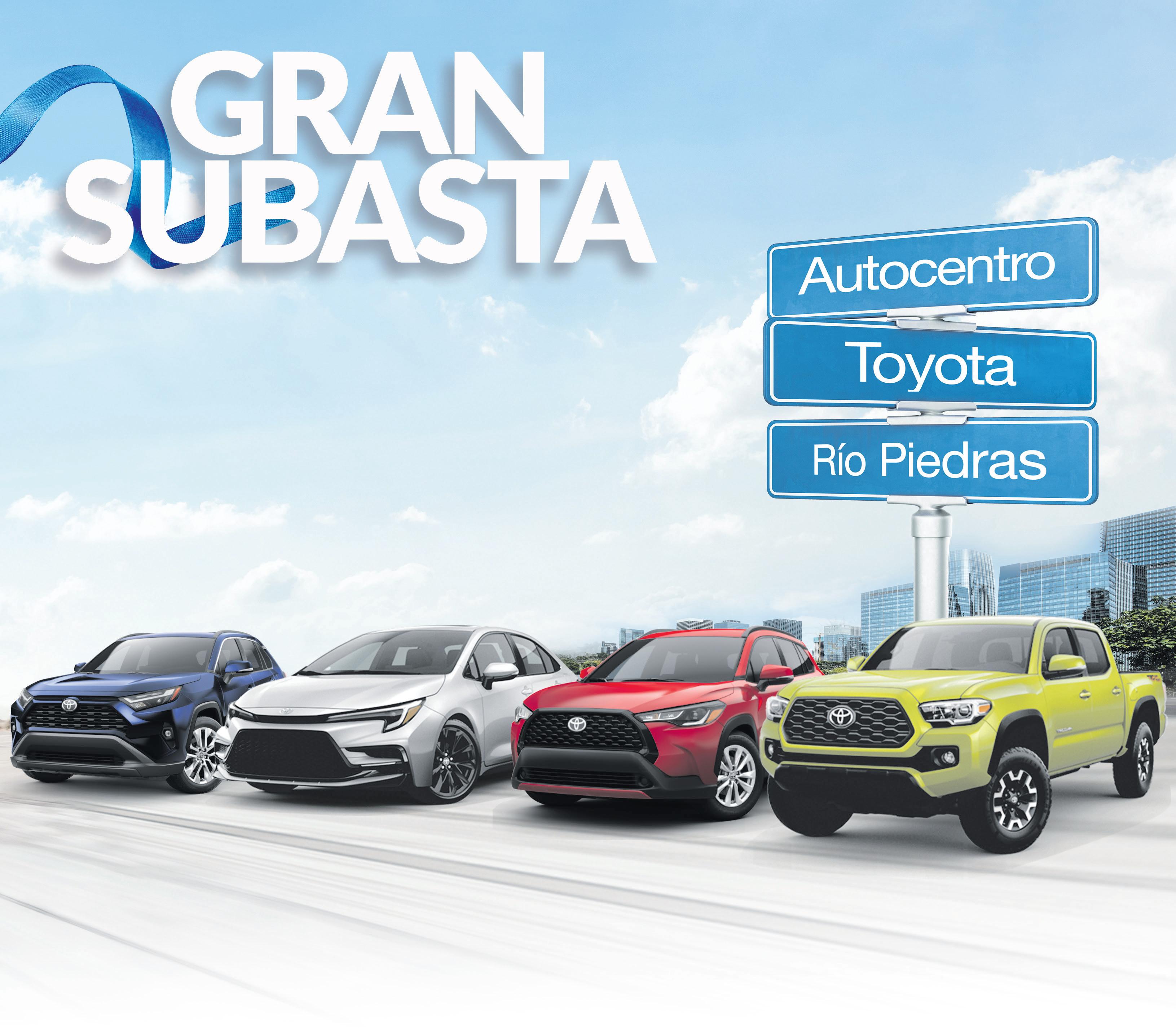 Corolla 2024 Mod. 1695, MSRP $26,150 oferta especial por $23,495 aplica a #845288. (SS) Corolla Cross 2024, Mod. 6380, MSRP $28,130; Bono $1,500, Pronto pago $16,500, BF, $10,130 (84) pagos de $143.13; $0 pronto (84) pagos de $397.45; pagos calculados al 4.98% APR; precio especial de $27,995 aplica a #839844, 842351, 842370, 842385. (R) Rav4 2024 Mod. 4360 #770911, MSRP $31,555; Pronto pago de $21,000; BF $10,555 (84) pagos $149.13; $0 pronto (84) pagos de $445.85; pagos calculados al 4.99% APR. (R) Rav4 2024 Mod. 4360, en oferta especial por $32,200 aplica a #854995. (R) Rav4 2024 Mod. 4386 #849396 MSRP $43,014, aplica bono de $3,000. (T) Tacoma #856548, MSRP $49,780, aplica bono de $3,500. (T) Tacoma #859214, MSRP $34,500, pronto pago de $17,000 (84) pagos de $266 al 6.95%. *Los acuerdos aquí mencionados deben ser trabajados a través de Toyota Credit de Puerto Rico: Cliente escoge entre pago diferido hasta noviembre 2024 o crédito aplicable a precio; 0% o 1.98% APR hasta 36 meses del programa convencional de TFS para Tier 1Plus & Tier 1 & 2, aplica a modelos específicos; Dos (2) años de cambio de aceite y filtro con Toyota Care;. Un (1) año de gasolina gratis aplica a modelos híbridos (basado en consumo promedio); Cero desembolsos para gastos de tablillas. Diez (10) años de asistencia a la carretera con contrato de servicio. * Accesorios Incluidos aplican a Tacoma 2023 #806408. Más detalles en el concesionario; Las ofertas antes mencionadas no se combinan con otras ofertas ni las ofertas de COSTCO Auto Program. AL COSTO LIQUIDACIÓN 7 8 7 PROBAMOS! ROBAMOS! OOS ¡SOMOS FAMILIA! SOLO EN CALESA TE DAMOS MÁS POR TU TRADE-IN SOBRE UNIDADES INVENTARIO TODO EL 350 $0 PAGOS hasta noviembre 20 24 * $0 * DESEMBOLSOS DE TABLILLA $0 * EN ACEITE Y FILTRO POR 2 AÑOS $0 * PRONTO A P R 1.98% EL DEALER DEL ¡ AHORRO! 1 * AÑO DE GASOLINA GRATIS ¡CERO EXCUSAS AQUÍ TE APROBAMOS! TACOMA $266 (T) 20 24 $3,500(T)DE BONO ALFOMBRAS ALL-WEATHER 10AÑOS AASISTENCIA LA CARRETERA 2 AÑOS MANTENIMIENTO GRATIS CONSÍGUELA HOY COROLLA CROSS $143 (SS) 20 24 AL COSTO $27,995 $1,500 DE BONO RAV 4 $149 (R) 20 24 AL COSTO $32,200 $3,000 DE BONO COROLLA $100(C) 20 24 AL COSTO $23,495