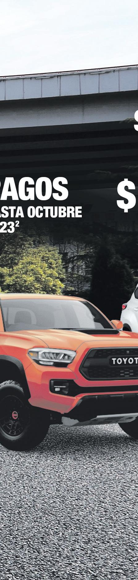 un término de 84 meses. Financiado a través de Credicentro de crédito. Empírica 795+. 12. 2023 RAV4 (30 MPG)- Precio de Venta $31,995. Pronto de $17,100. BONO $1,250. Unidad 94943. Balance a financiar $13,904.98. Pago mensual de $198 al 5.99% APR a 84 meses. Financiado a través de Toyota Financial aprobación de crédito. 14. 2023 Highlander (24 MPG)- Precio de Venta $50,995. Pronto de $28,500. BONO $2,000. Balance a financiar $20,750.00. Pago mensual de $398 al 5.99% APR a 84 meses. Financiado a través de Toyota Financial Credit. Sujeto a Autocentro Nissan 787-303-1265 Llama Antigua Lotería Jardín Botánico Toyota de Puerto Rico Pollo Tropical Walgreens Autocentro Toyota Río Piedras Hacia Río Piedras Hacia Caguas Avenida Muñoz Rivera Avenida 65 de Infantería Avenida Piñero POWERED BY Automotive Group 2023 TACOMA 13 $285 mens. $5,000 DE BONO 18 MPG 2023 RAV4 12 $198 mens. $1,250 DE BONO 30 MPG 2023 HIGHLANDER 14 $398 mens. $2,000 DE BONO 24 MPG 2023 COROLLA 11 $118 mens. $2,500 DE BONO 33 MPG AUTOCENTRO POR DEBAJO DEL COSTO