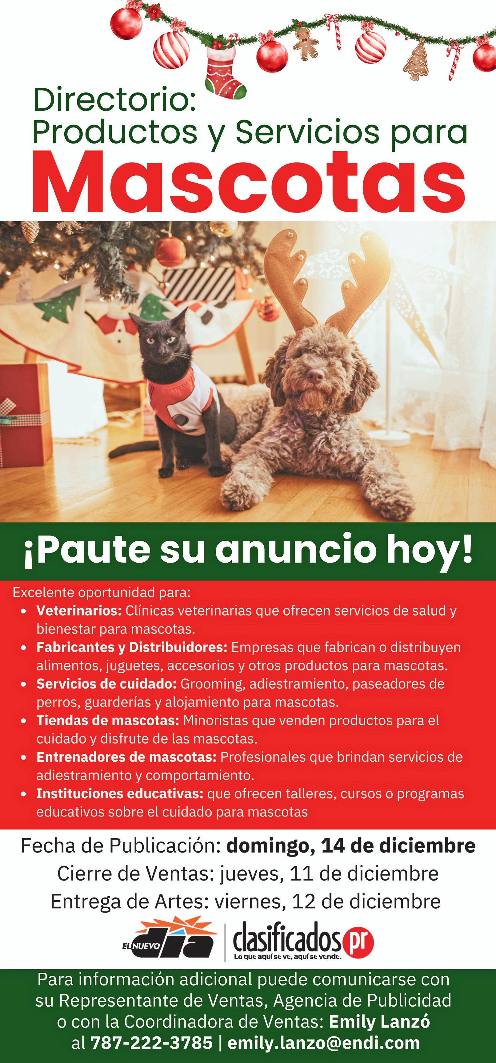 Para información adicional puede comunicarse con su Representante de Ventas, Agencia de Publicidad o con la Coordinadora de Ventas Emily Lanzo al 787-222-3785 emily.lanzo@endi.com; ele.anuncios@gmail.com
