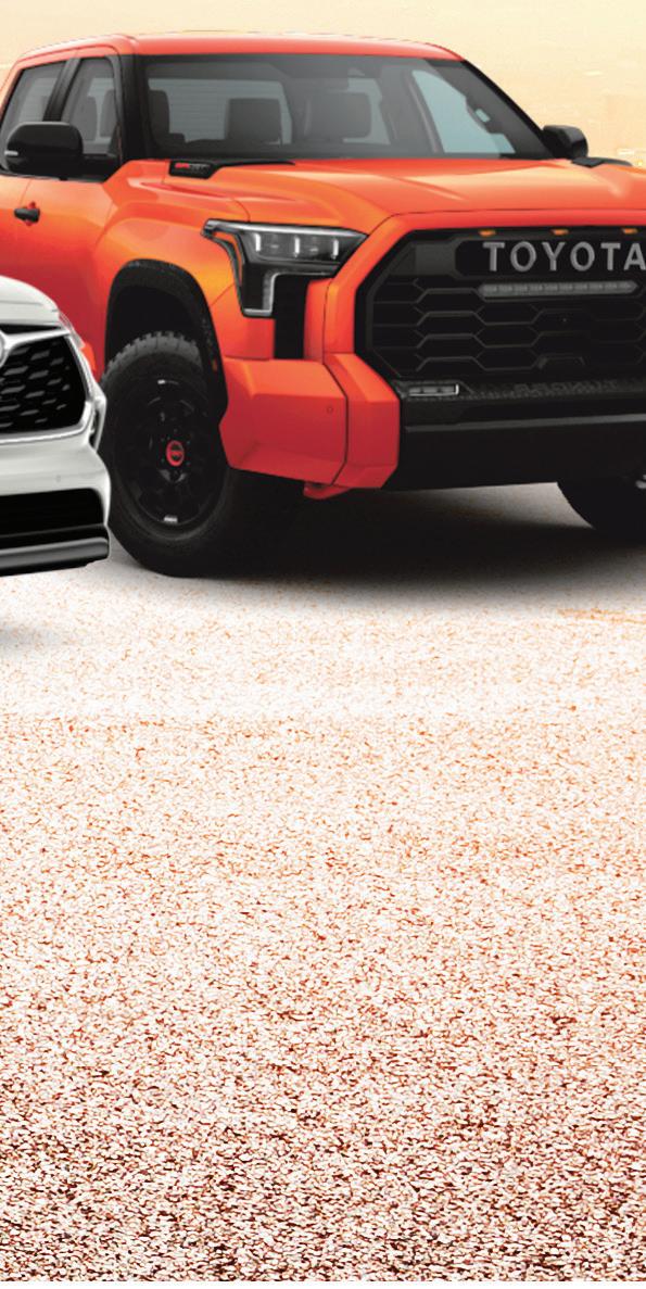 4 EL NUEVO DIA | MIÉRCOLES, 2 DE NOVIEMBRE DE 2022 www.clas 2022 FRONTIER 8 18/24 MPG 2023 ROGUE 9 27/35 MPG 2023 KICKS10 $169 mens. $3,000 DE BONO 31/36 MPG 2022 VERSA11 $99 mens. $4,000 DE BONO 33/40 MPG$399 mens. $299 mens. $2,000 DE BONO$12,000 DE BONO 1. Garantía Por Vida aplica a todas las unidades nuevas. Ciertas restricciones aplican. Para más información favor de visitar el dealer. 2. Pagos desde $99 aplica a 2022 Versa - (MPG 32/40) (VS-2204) Precio de Venta $25,995. BONO $4,000. Pronto de $15,100. Bono $12,000 aplica a 2022 Frontier (MPG 18/24) (FC-2204) Precio de Venta $56,995. BONO $12,000. Pronto $17,500. Pago mensual de $399 al 5.85% APR a un término de 84 meses. Financiado a través de Toyota Financial Credit. 6. Aceite y ltro de por vida Pronto $17,500. Pago mensual de $399 al 5.85% APR a un término de 84 meses. Financiado a través de Toyota Financial Credit. 9. 2023 Rogue (MPG 27/35) (RO-2300) Precio de Venta $39,995. BONO $2,000. Pronto de $17,400. Pago mensual de $299 al Financiado a través de Toyota Financial Credit. 11. 2022 Versa - (MPG 32/40) (VS-2204) Precio de Venta $25,995. BONO $4,000. Pronto de $15,100. Pago mensual de $99 al 5.70% APR a un término de 84 meses. Financiado a través de Toyota Financial Credit. 13. Tacoma 2022 (21MPG) Precio de Venta $37,910. BONO $3,500. Unidad 16017 Pronto de $15,000. Balance a nanciar $18,000. Pago mensual de $290 al 5.59% APR a 84 meses. Financiado a través de Toyota Financial Credit. 14. Highlander 2022 (24 MPG)Precio de Venta $84,995. BONO $5,000. Pronto $7,500. Pago mensual de $995 al 3.99% APR a 84 meses a través de Toyota Financial Credit. Sujeto a aprobación de crédito. Ninguna oferta puede ser combinada con otra. Ciertas restricciones aplican. Ofertas CON HONESTIDAD, INTEGRIDAD, RESPETO Y COMPROMISOde por CONFIANZA VIDA Gran Venta La del