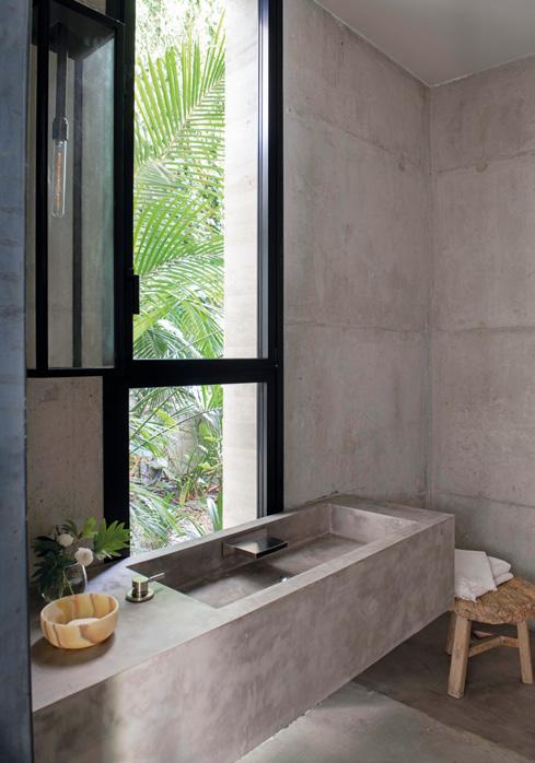 Oriented to the garden. The large windows stand out, allowing light and vegetation to invade the entire room, giving privacy with a natural linen curtain and on the façade with vertical parameters in black iron that allow playing with light.