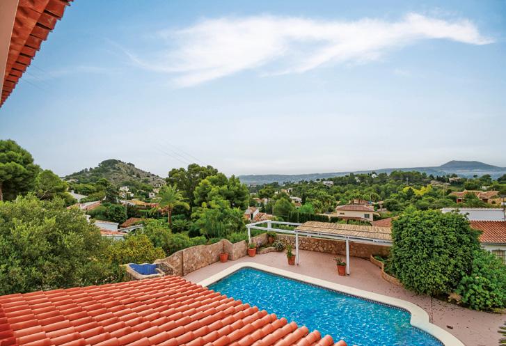 Plot 1.898 m², living area 565 m². Quality villa with 5 bed, 3 bath, 3 lounges, 2 kitchens, C/H, chimney, summer kit chen, garage, 10x5 m pool, garden, panoramic views.