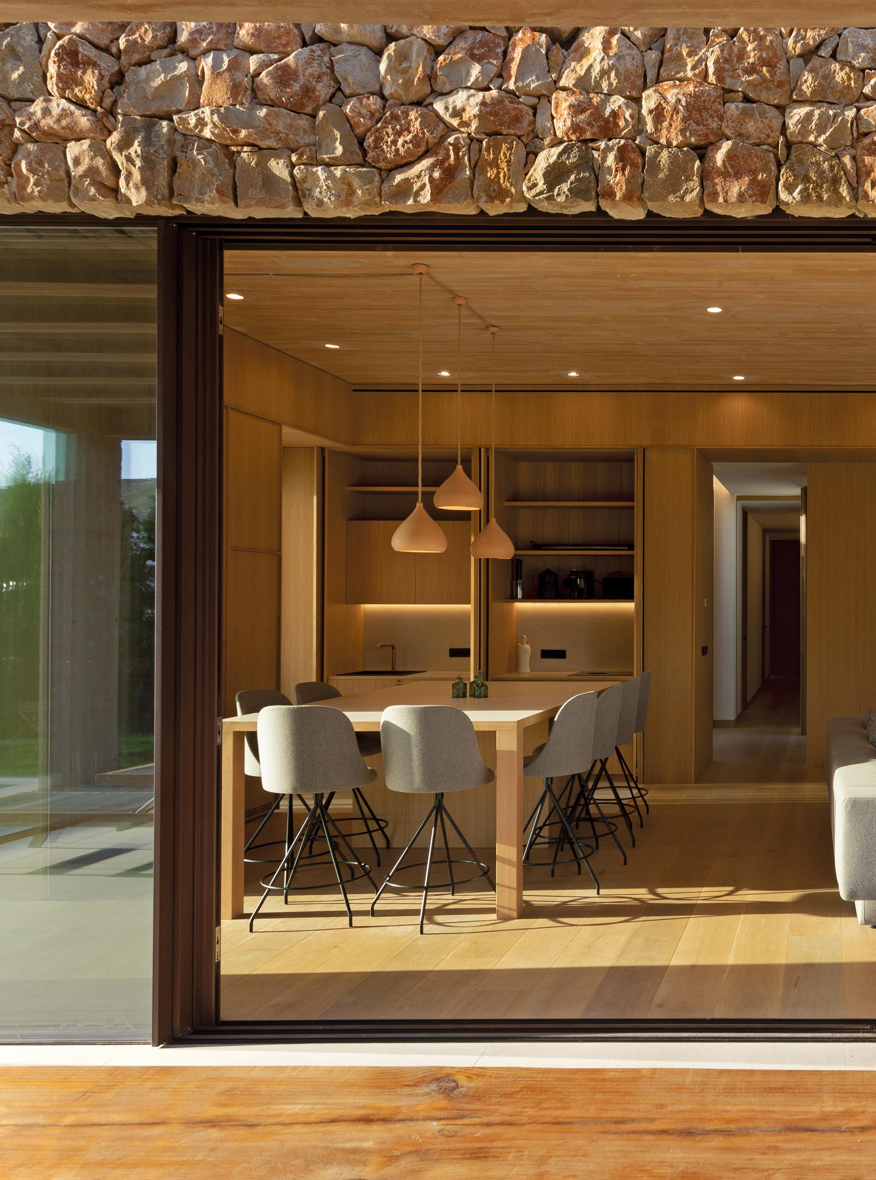 The materiality of the house seeks the encounter between Mediterranean architecture throughout the exterior, with the execution of its walls with stone from Benisa, using the traditional rigging of the terraces of the area, pigmented concrete in the tone of the stone and textured with pine wood planks and a more Nordic architecture for the interior, where the oak wood paneling integrates all the elements that make up the interior envelopes of the house.