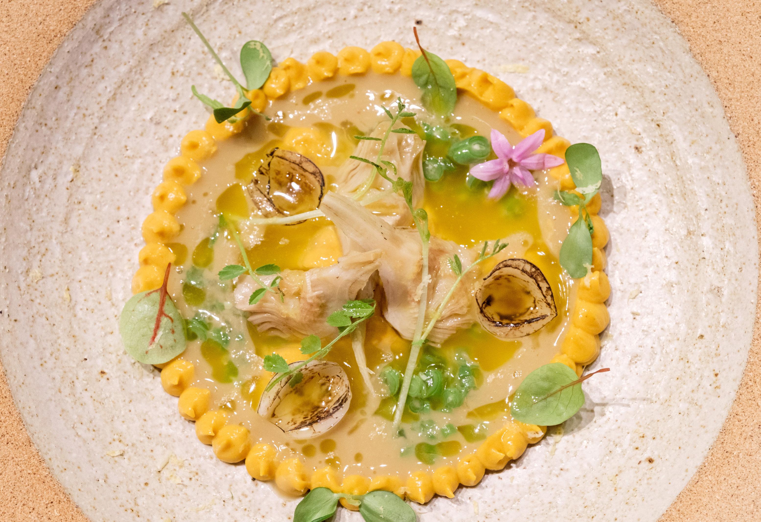 Elaboraciones como Polpet a la brasa amb crema d’all i kale, ceviche de langostinos con leche de tigre de ñora, blanquet de magret de pato, setas de temporada y foie escabechado… Los grandes talentos emergentes de la provincia de Alicante Miquel Gilabert (Mare, Benidoleig), Aina Serra (Casa Pepa, Ondara 1*- 2 Soles) y Jorge Amores (Ñam, Guardamar del Segura) prepararon un menú único creado con productos alicantinos.
