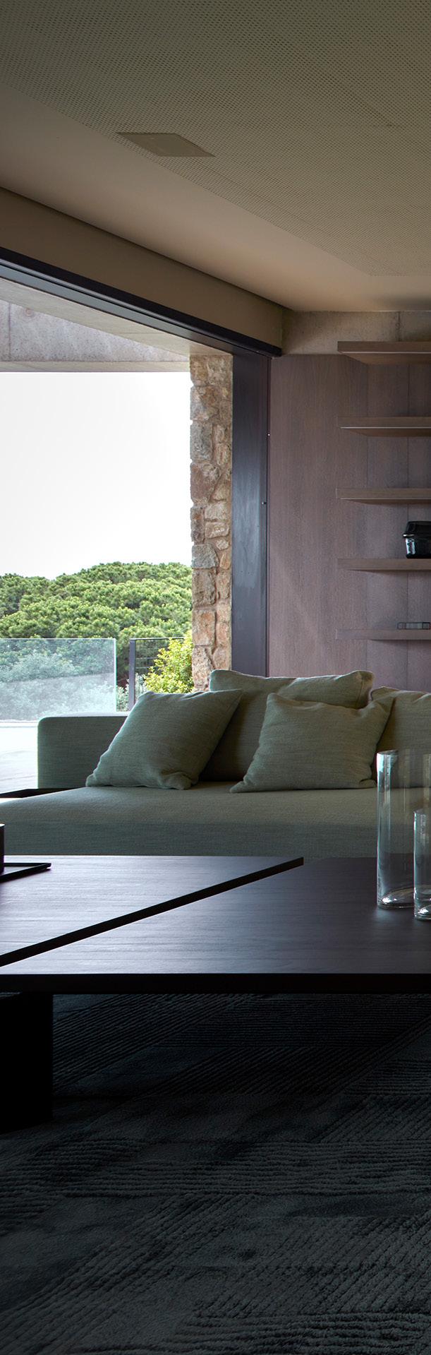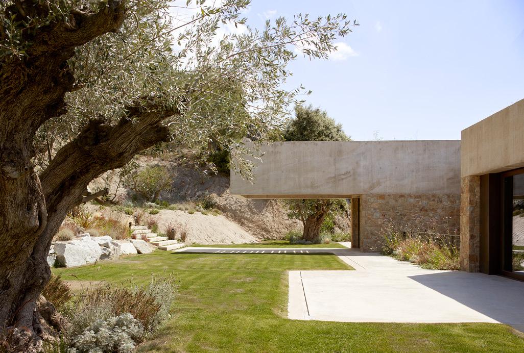 In this project the landscape plan acquires great importance. The garden is conceived as a field integrated into the Mediterranean coastal forest, which includes a palette of typical Mediterranean species chosen for their structure, textureorflowering.Saidfloweringischosenfollowingthechromaticrangeof the house for its orange and ocher colours, which harmonize with wood, steel and stone.Various degrees of outdoor spaces are generated where vegetation appropriates the space, such as patios, gardens, gazebos, or plant cover.
