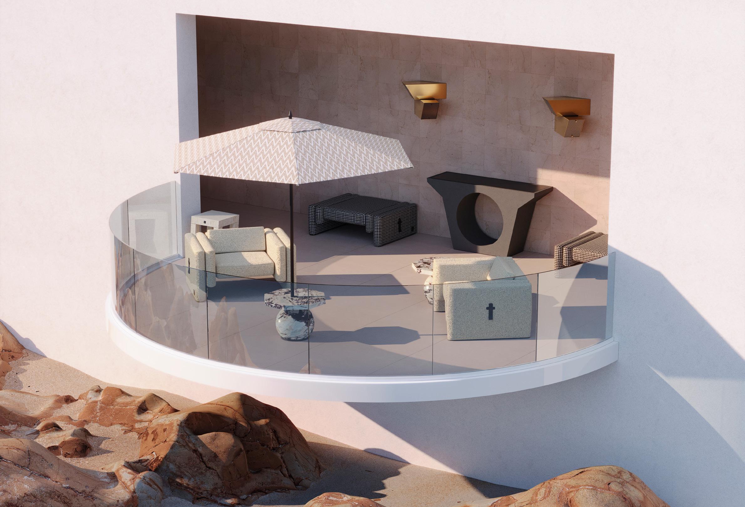 Mediterran Resort collection elevates the outdoor living design with an unconventional communion of soothing colors, vintage patterns, innovative fabrics and modern furniture and lighting to create outdoor spaces that are as beautiful and luxurious as indoors. This cruise collection introduces new products with contemporary and irreverent design, as well as new interpretations and finishes of our best-sellers.