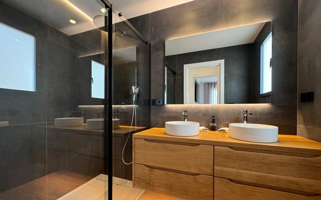 En la planta inferior se encuentran los dormitorios, diseñados como un refugio tranquilo con agradables vistas. La propiedad destaca por el uso de materiales nobles como el mármol, que aportan un estilo sofisticado y atemporal.