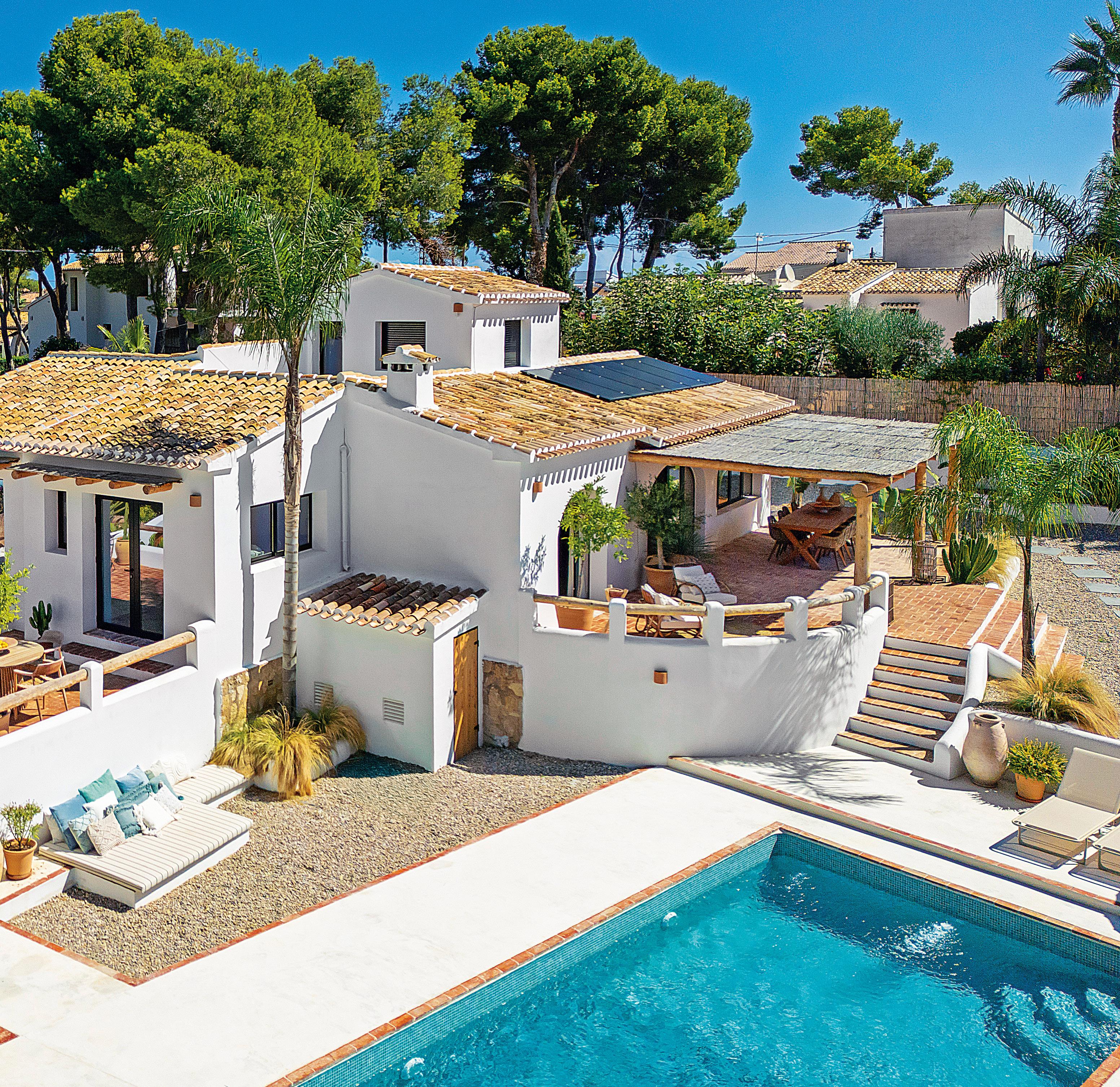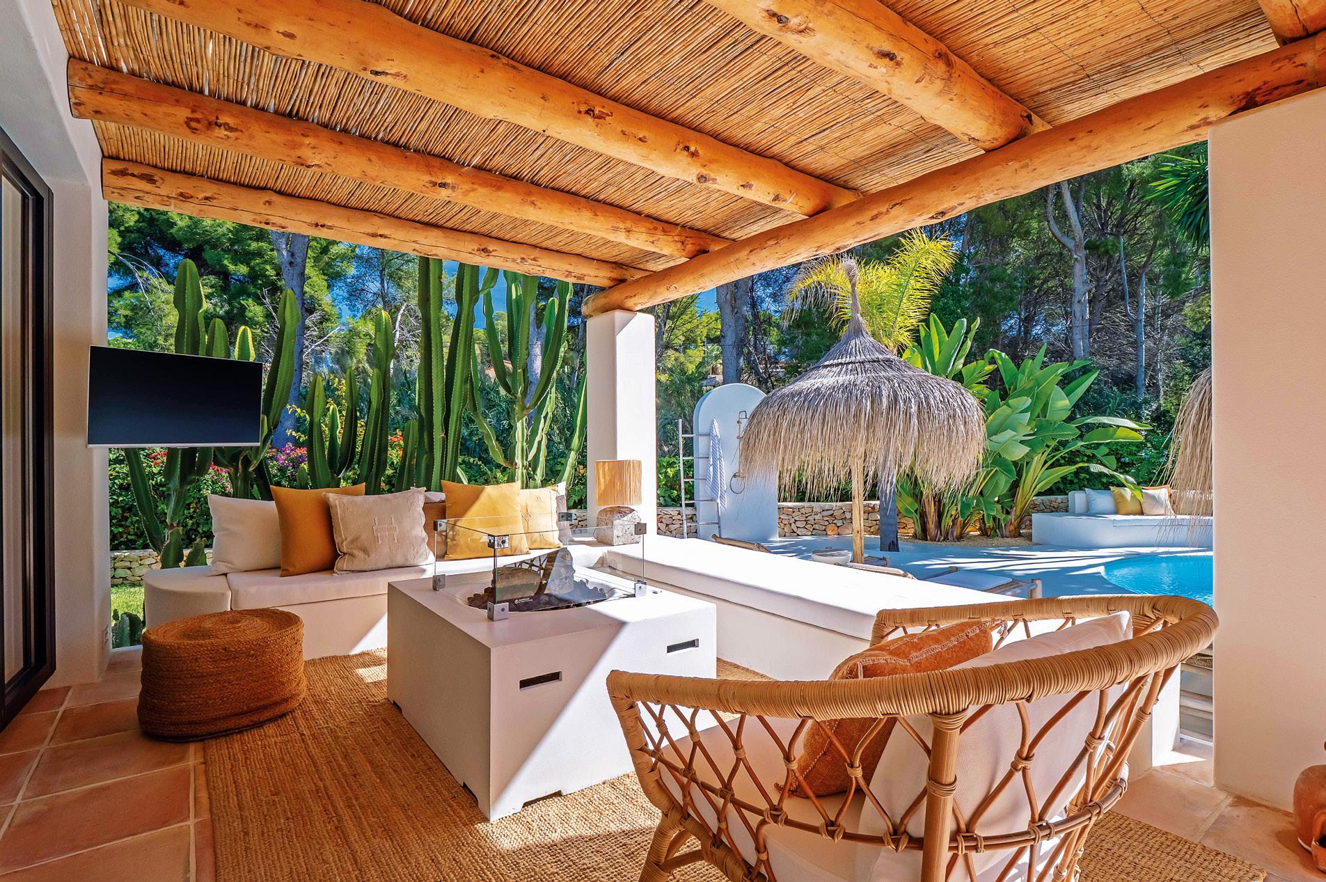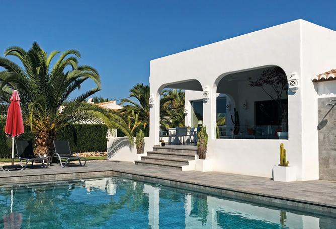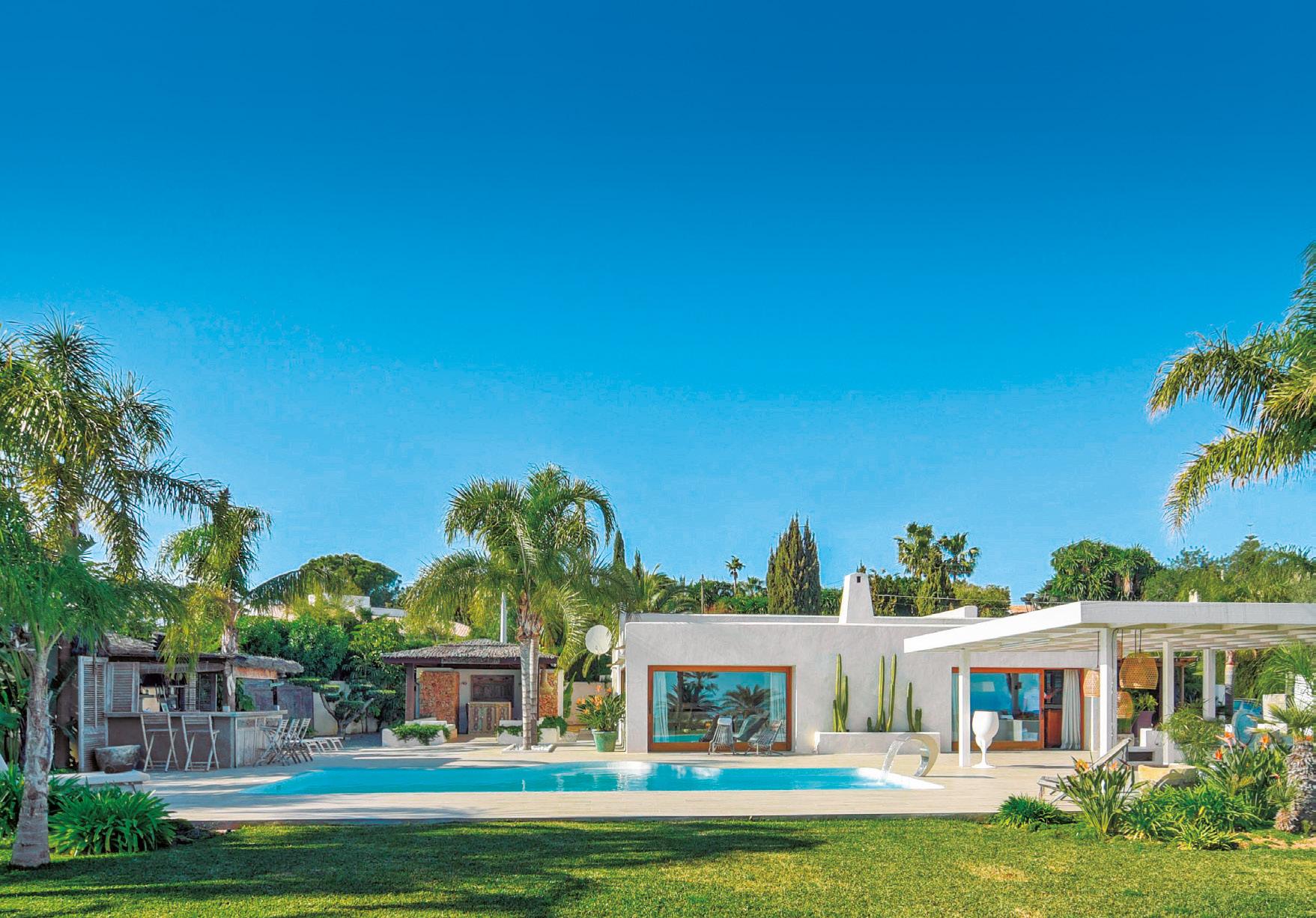 Villa Campaneta, elegancia ibicenca, luz y privacidad en un entorno tropical. Un refugio donde todo invita al bienestar, a distancia de marcha de la Playa del Arenal, Jávea.