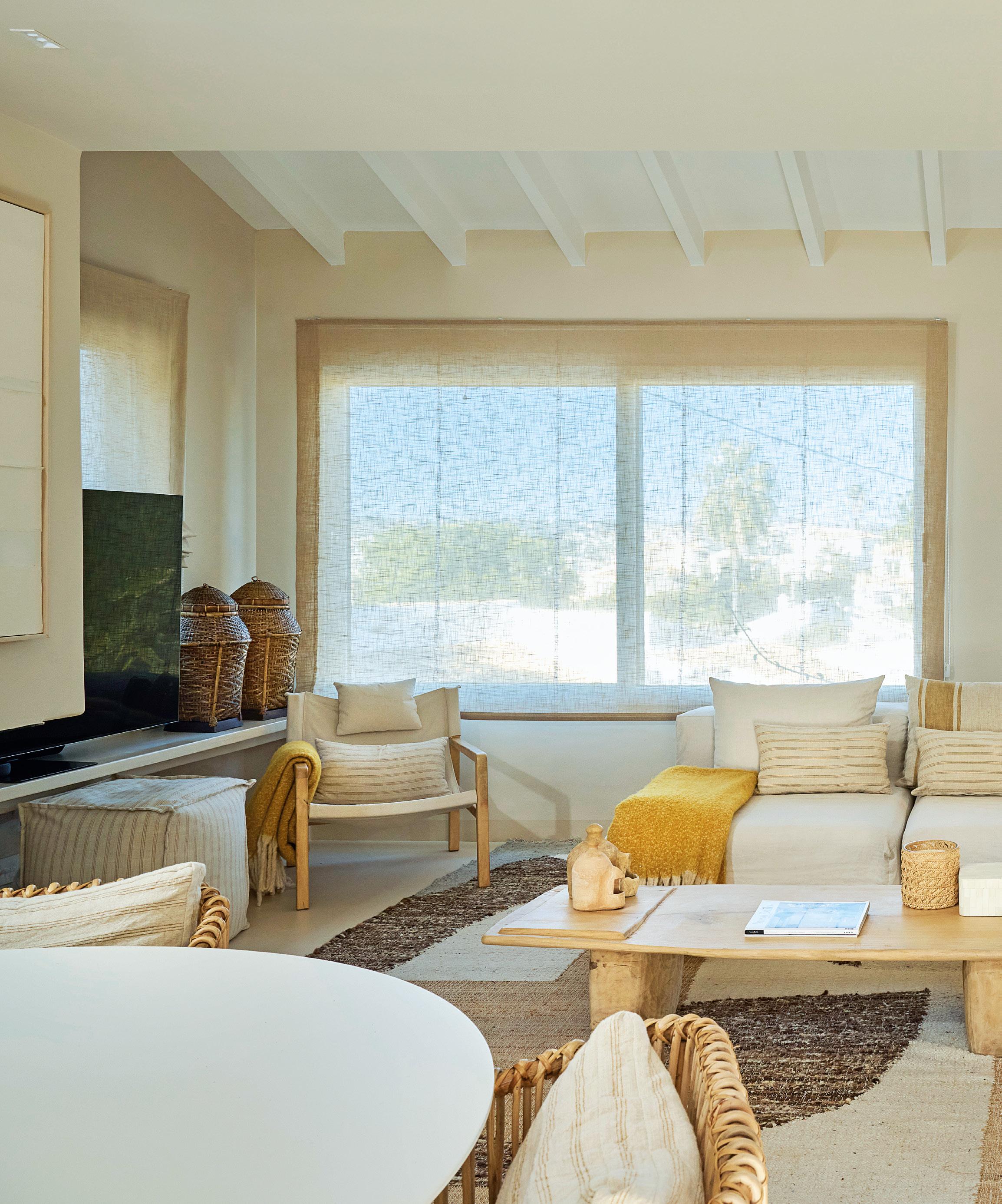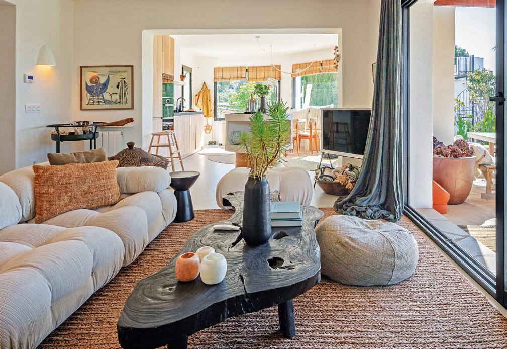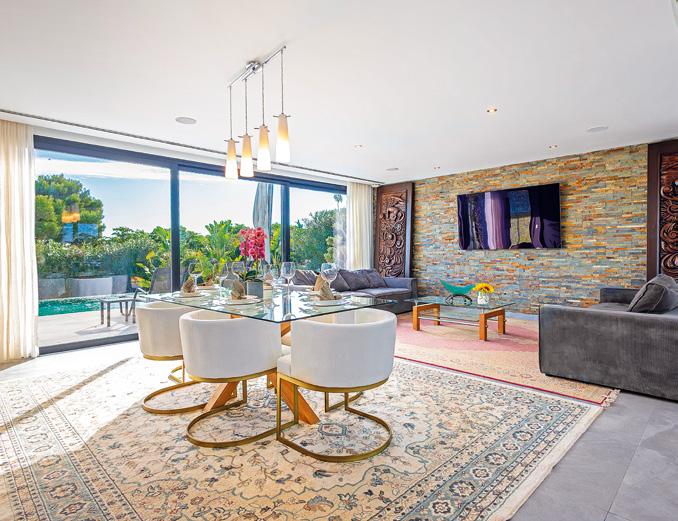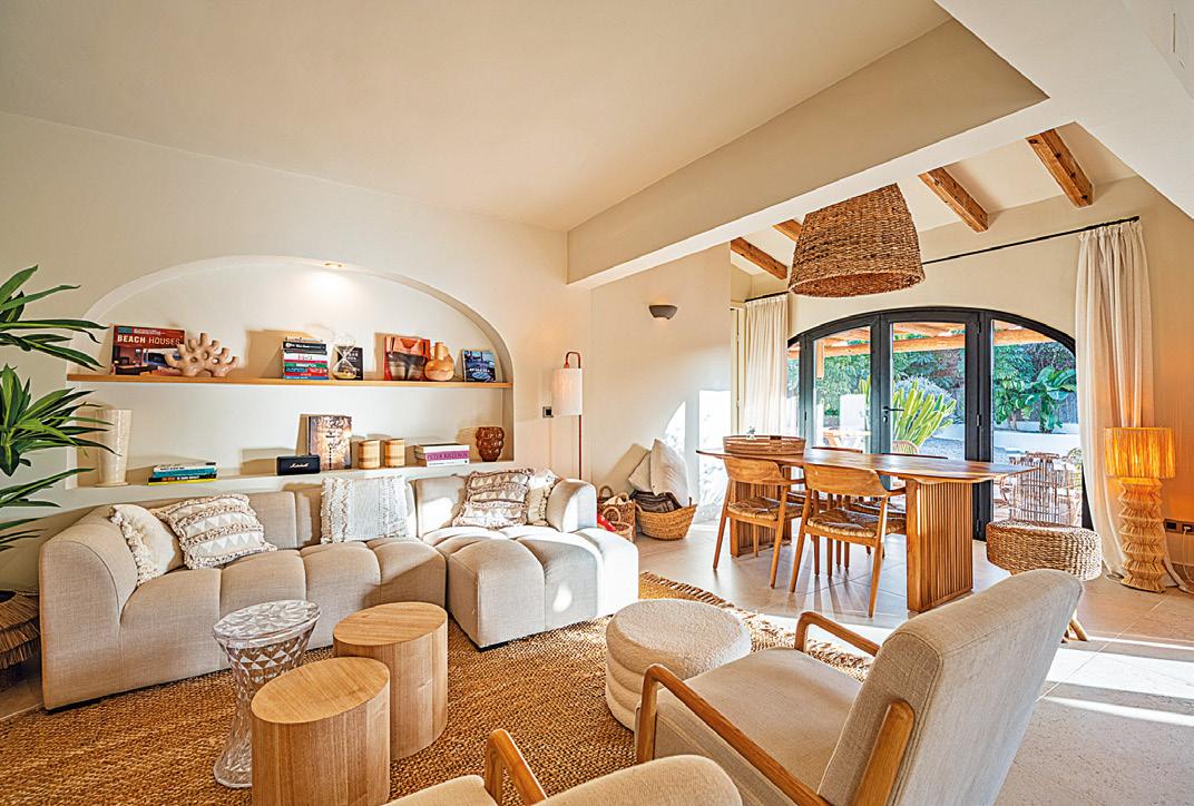 The villa has been thoughtfully designed with a warm, contemporary Ibiza-inspired aesthetic. Soft earthy tones, natural materials and architectural arches create a harmonious and inviting atmosphere throughout. The open-plan living and dining area flows seamlessly onto the outdoor terraces, creating a bright and inviting space for both everyday living and entertaining.