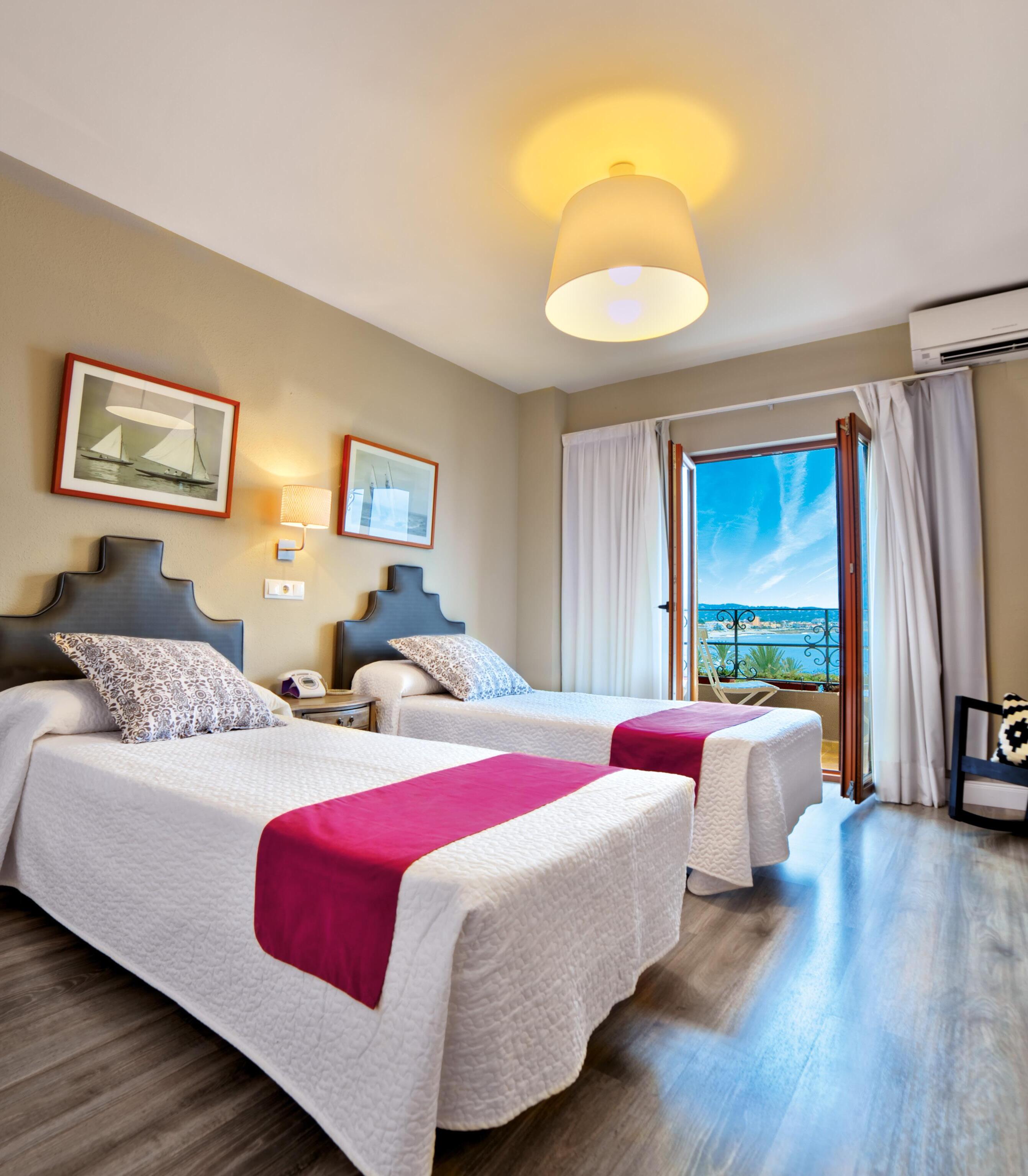 La planta baja cuenta con un amplio espacio abierto con salón, comedor y cocina, además de tres dormitorios con baño en suite. La planta superior alberga la suite principal con terraza y vistas al mar y al Montgó, junto a un solárium independiente.