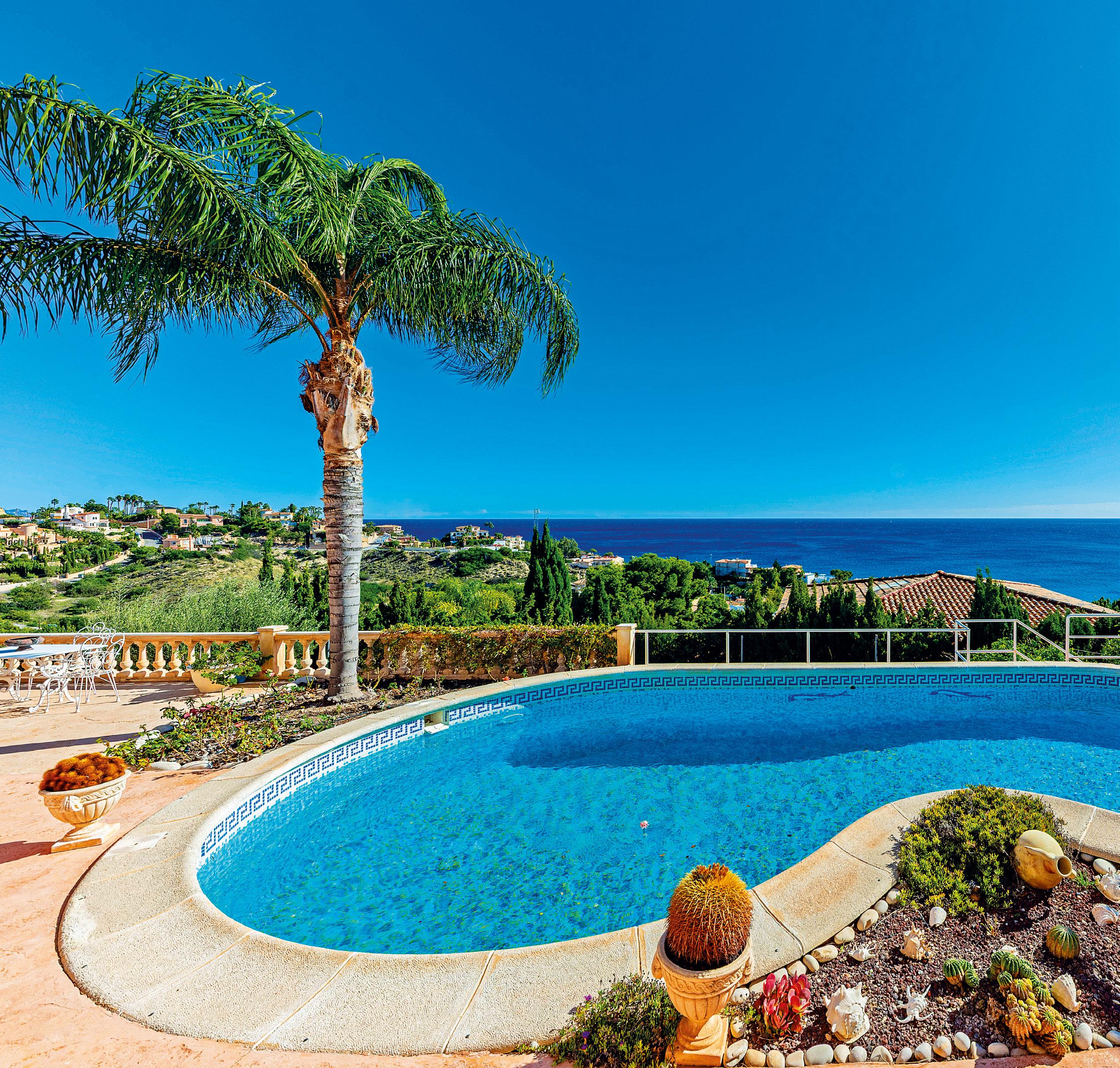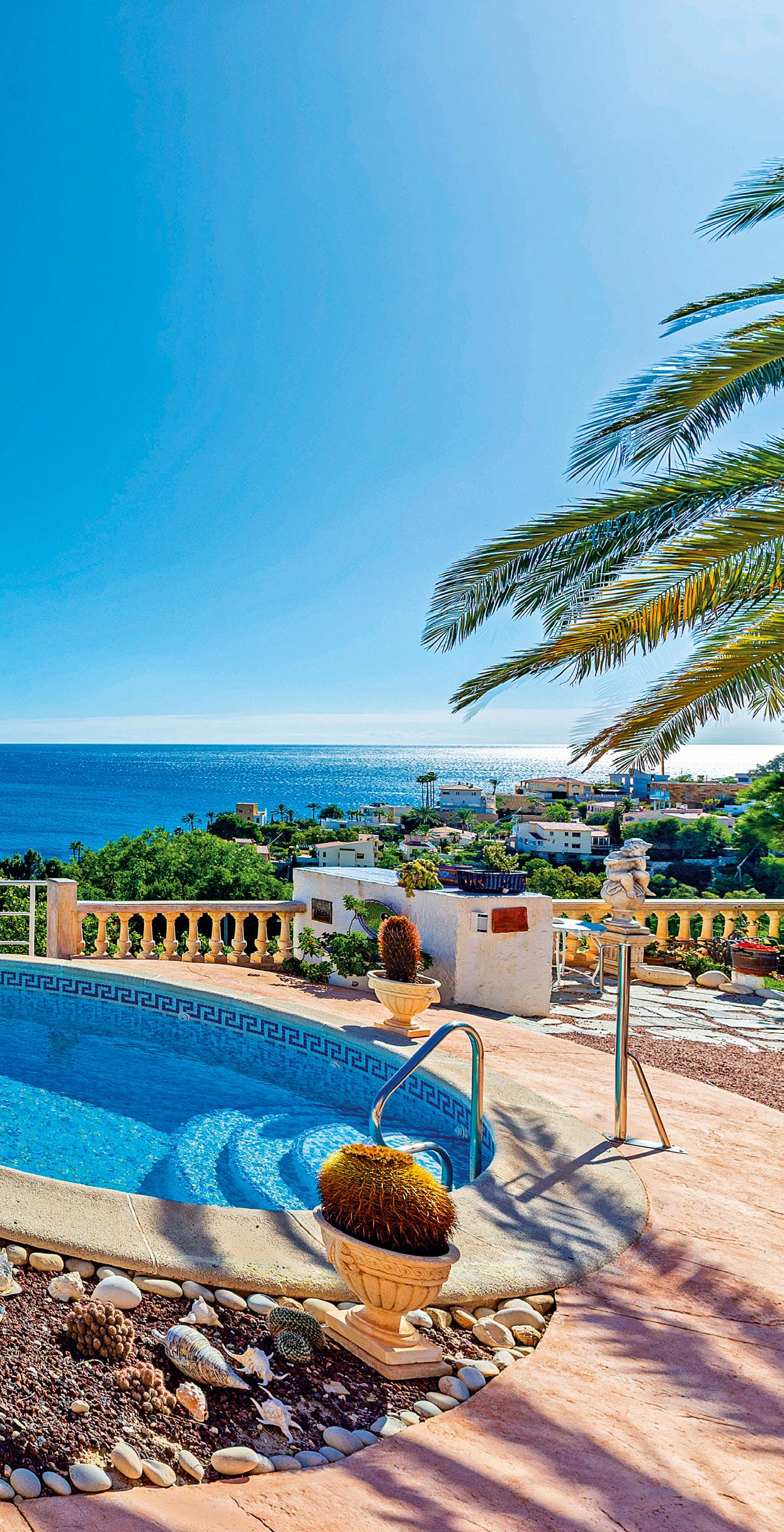 Perched in the exclusive enclave of Coveta Fumá, Villa Edelweiss is a refined Mediterranean villa offering panoramic sea views and complete privacy. Set on an elevated southfacing plot, the 268 m² residence enjoys natural light throughout the day. The property features a bright lounge with fireplace, dining area, fully equipped kitchen, and three bedrooms, including an upper-level master suite. Outdoors, a private pool, spacious terraces, and mature gardens create an ideal setting for relaxation. Located within walking distance of Cala Piteres, the tram, and close to El Campello marina, this is an exceptional coastal home.
