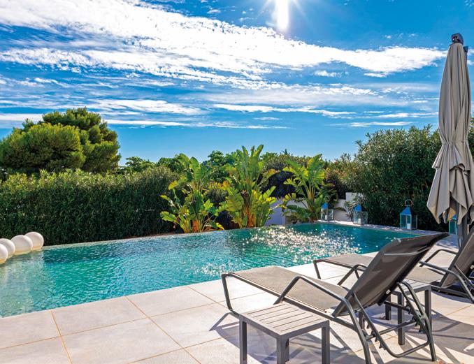 Set on a 1,175 m² plot, the outdoor areas capture the essence of Mediterranean living. Multiple terraces surrounded by lush greenery provide a variety of spaces to relax, dine and entertain. The private swimming pool becomes the focal point for long summer days, offering complete privacy and a serene setting to enjoy with family and friends.