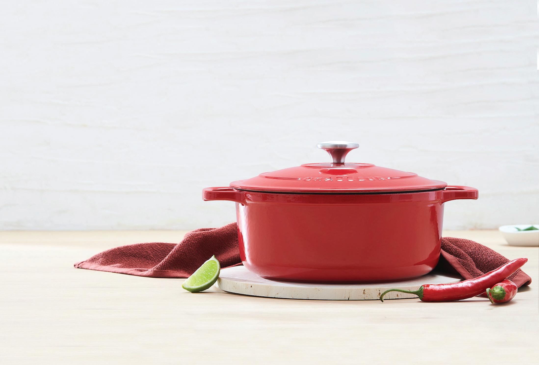 A Round French Oven is an absolute essential. With a heavy cast-iron construction and enamelled surface that ensures even heating, efficient browning and deglazing.