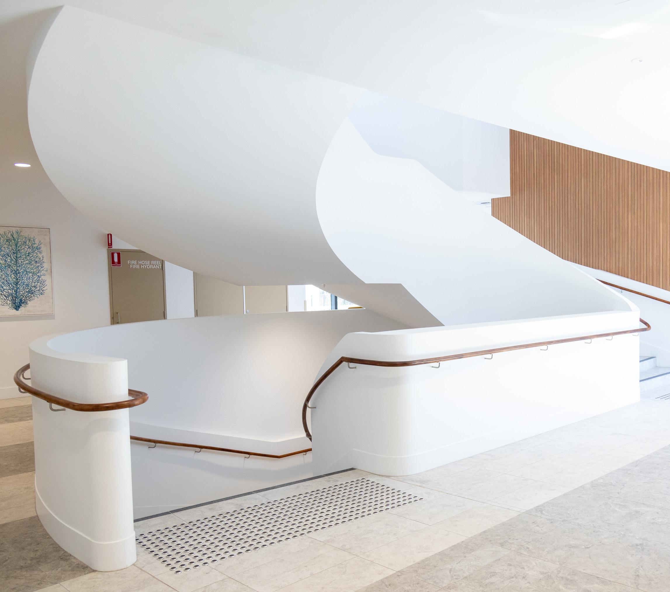 Wyvern Private Hospital is a feat of architecture. From the northerly neighbour’s vantage point it’s barely visible, it sits so snugly in its bushland surrounds at Terrey Hills, yet its streetscape is magnificent. A blend of glass, concrete and timber, it speaks of thoughtful process, considered purpose and impressive engineering.