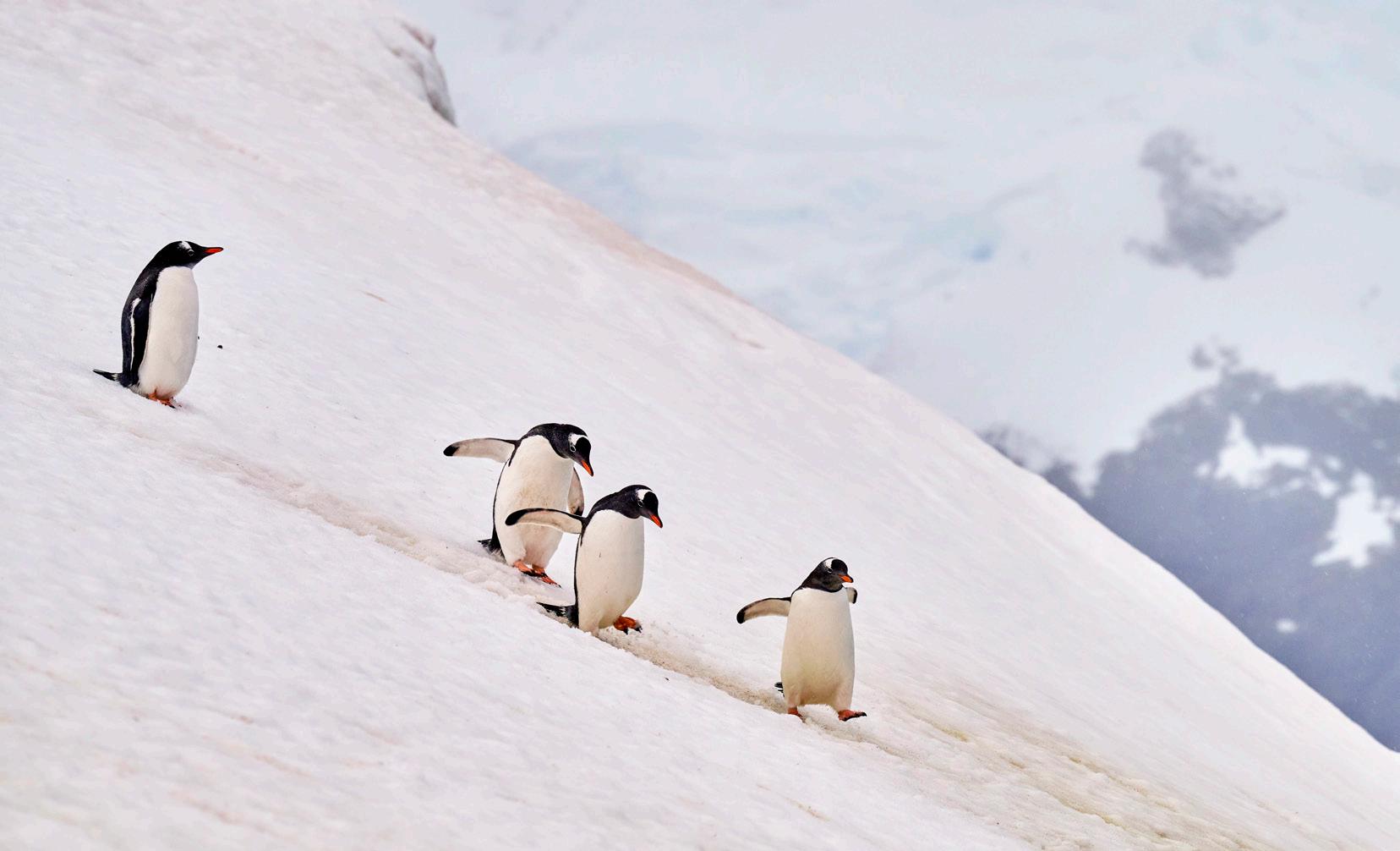 Moving through this amazing environment is a spiritual experience and one not easily forgotten, offering the chance to reflect on the power of nature and discover what untouched and untamed truly looks like. As we disembarked from our zodiacs to set foot on the continent for the first time in Neko Harbour, we were greeted by a welcoming committee of noisy and inquisitive Gentoo penguins. Ranging from 70 to 90 cm tall, they seemed unconcerned by our arrival, and although the odd individual seemed a little curious at times, they nonetheless were happy to go about their business. I stood quietly, taking it all in, grateful for the circumstances that had conspired to bring me here.