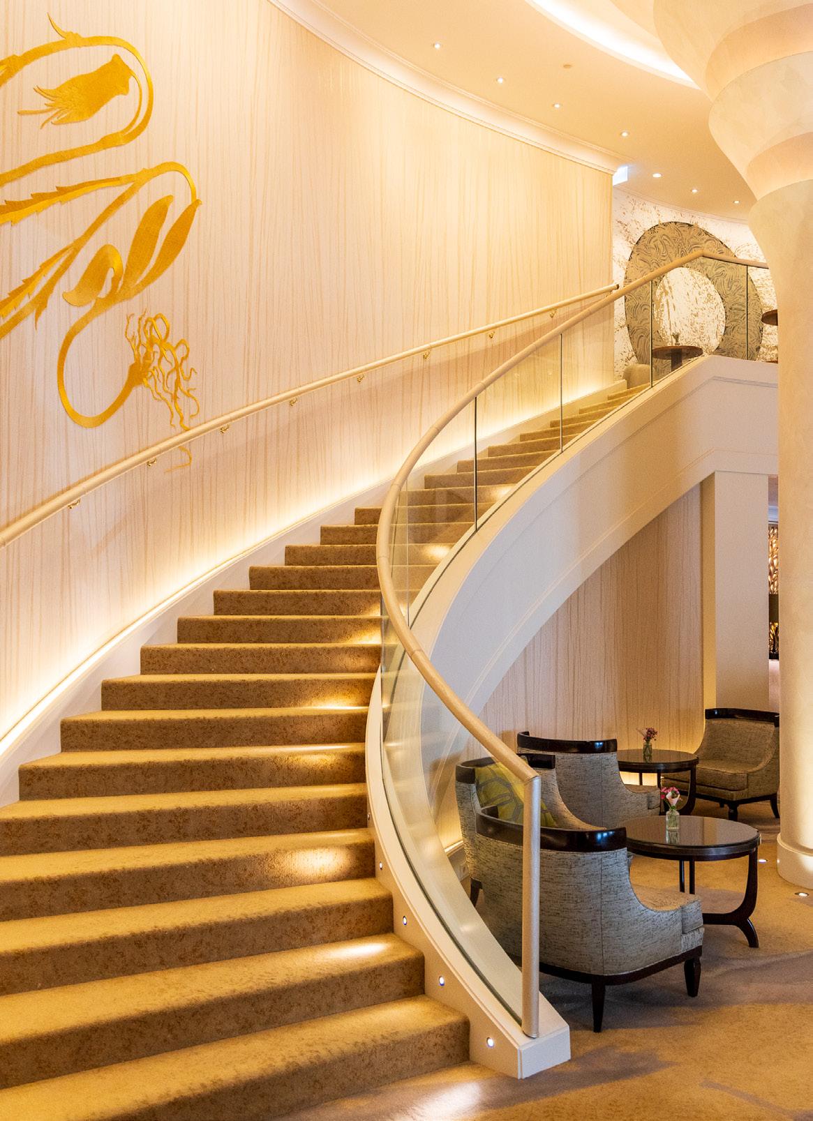 The cultural richness of the space is further elevated by our collaboration with UAE-based designer Nadine Kanso, who created exclusive Arabic calligraphy tableware in partnership with Bernardaud. It’s a subtle yet powerful expression of our values – elegance, identity, and a deep connection to our heritage. Together, these elements transform the lobby into more than just a gathering space; it becomes a living tribute to the spirit of Jumeirah Marsa Al Arab.